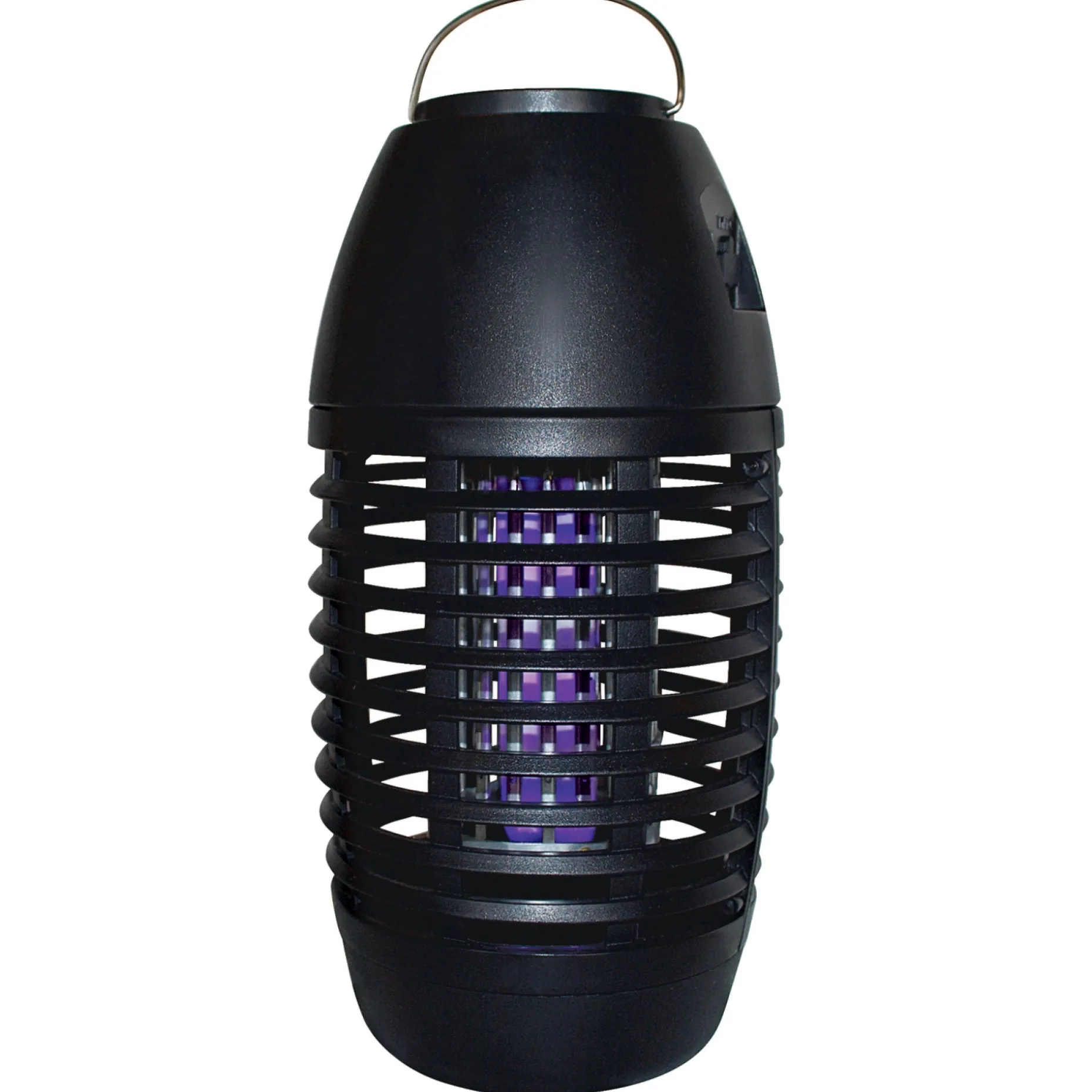 Det blå UV LED lys tiltrækker insekterne, som dræbes på det elektriske gitter.