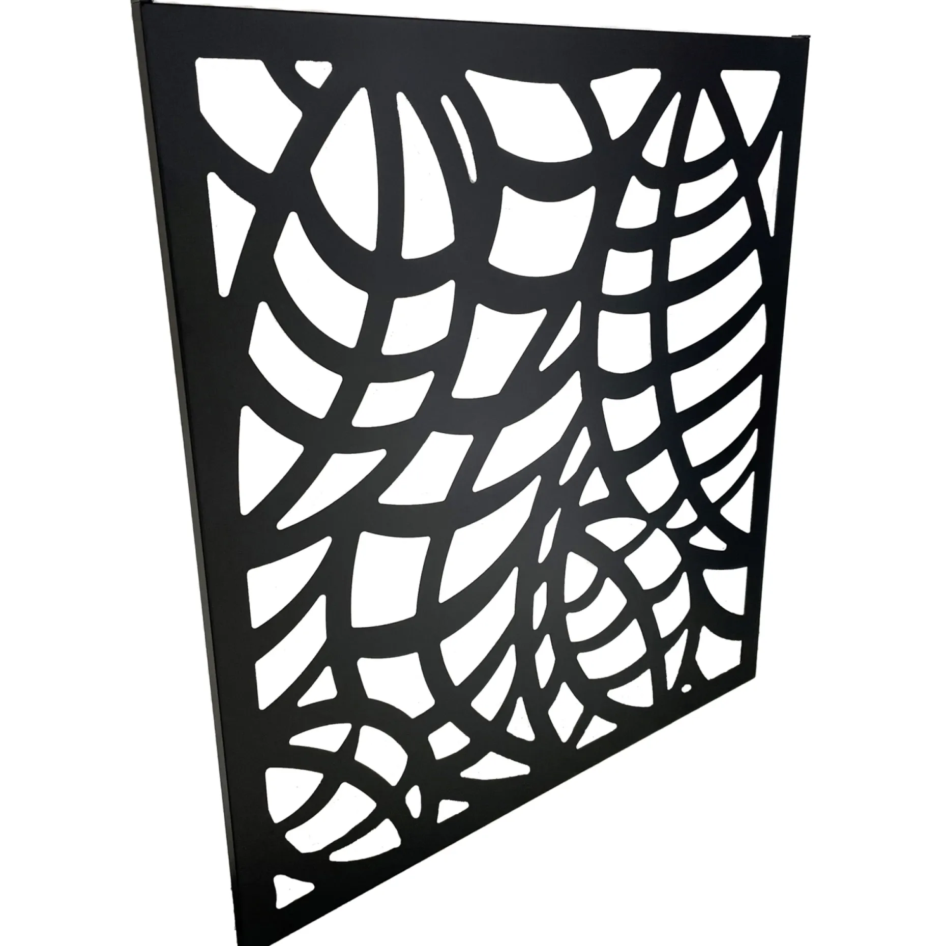 Alu Panel – blad modul 95 til Skagen hegn. Alu panel – Blad er B 87,4 x H 94 cm. Dette giver en stolpe center til center mål på 90 cm. Produktet er lavet af aluminium og sort malet.