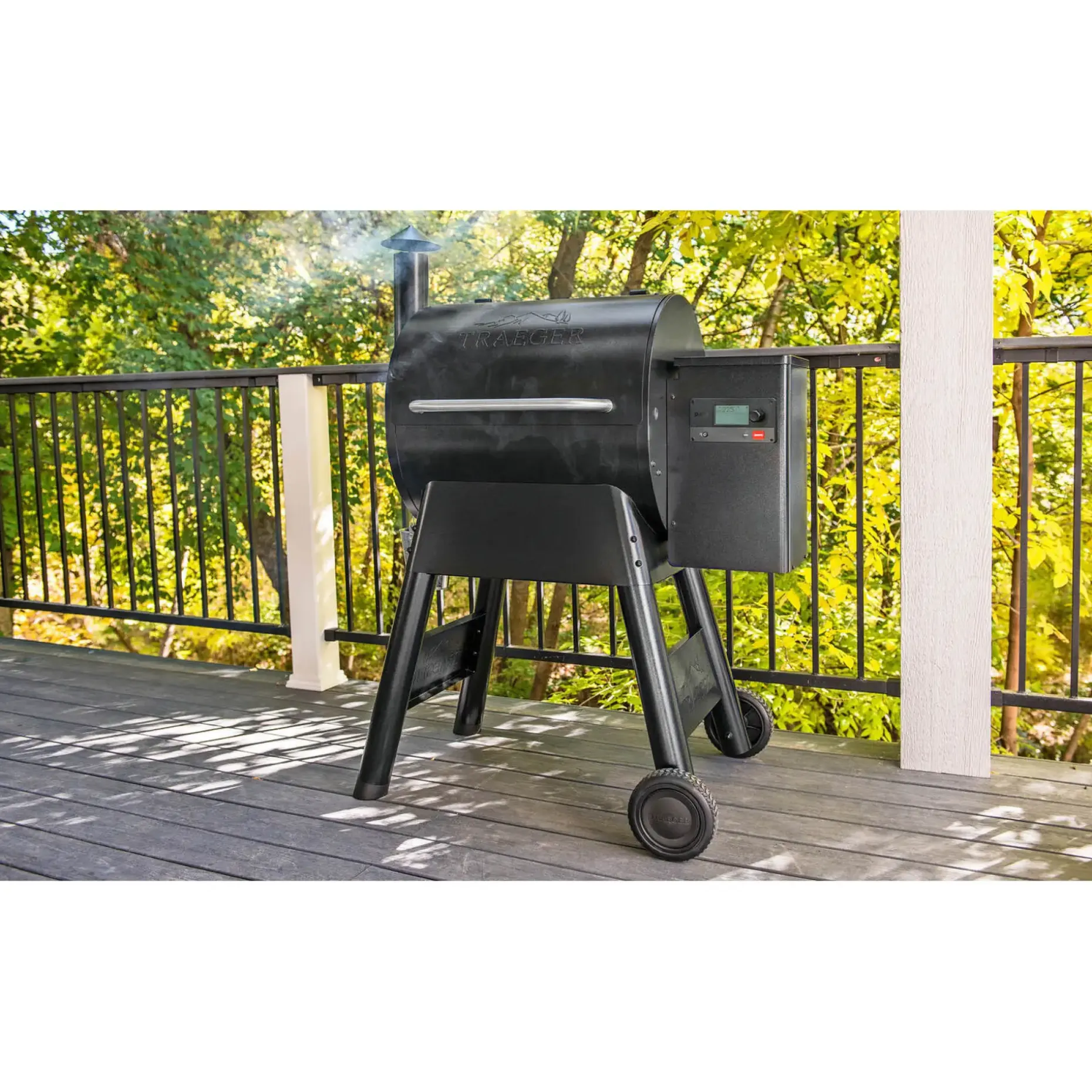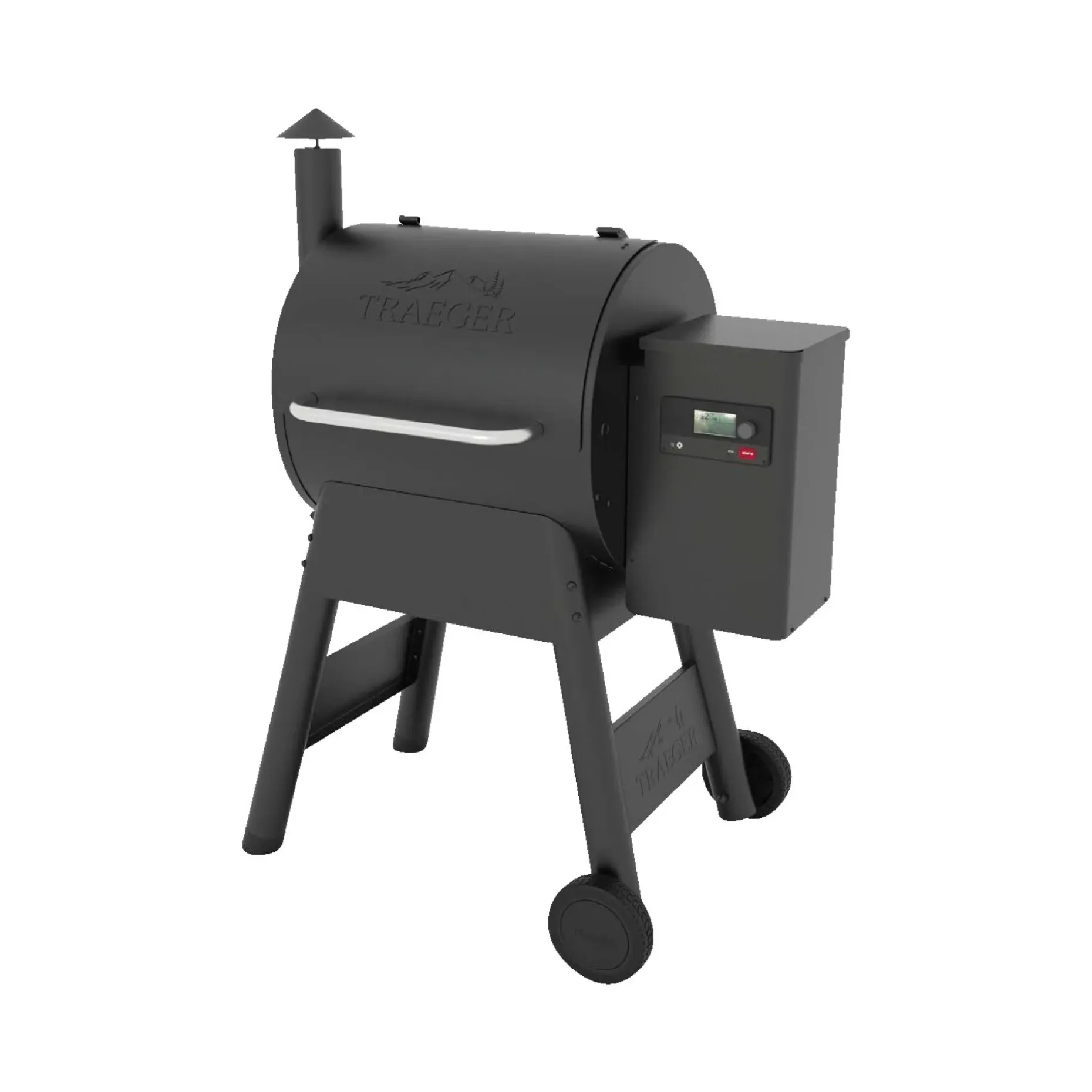 Traeger Pro 575 er udstyret med den karakteristiske skorsten fra verdens første pillegrill, som naturligvis var en Traeger! Der er 2 niveauer i grillen med hver sin grillrist i sort porcelænsemaljeret stål. Pilletanken kan rumme 8,2 kg Traeger træpiller, som kan holde grillen i gang i lang tid. Traeger Pro 575 er udstyret med WiFi, så du kan styre grillen via din mobil med Traegers app.