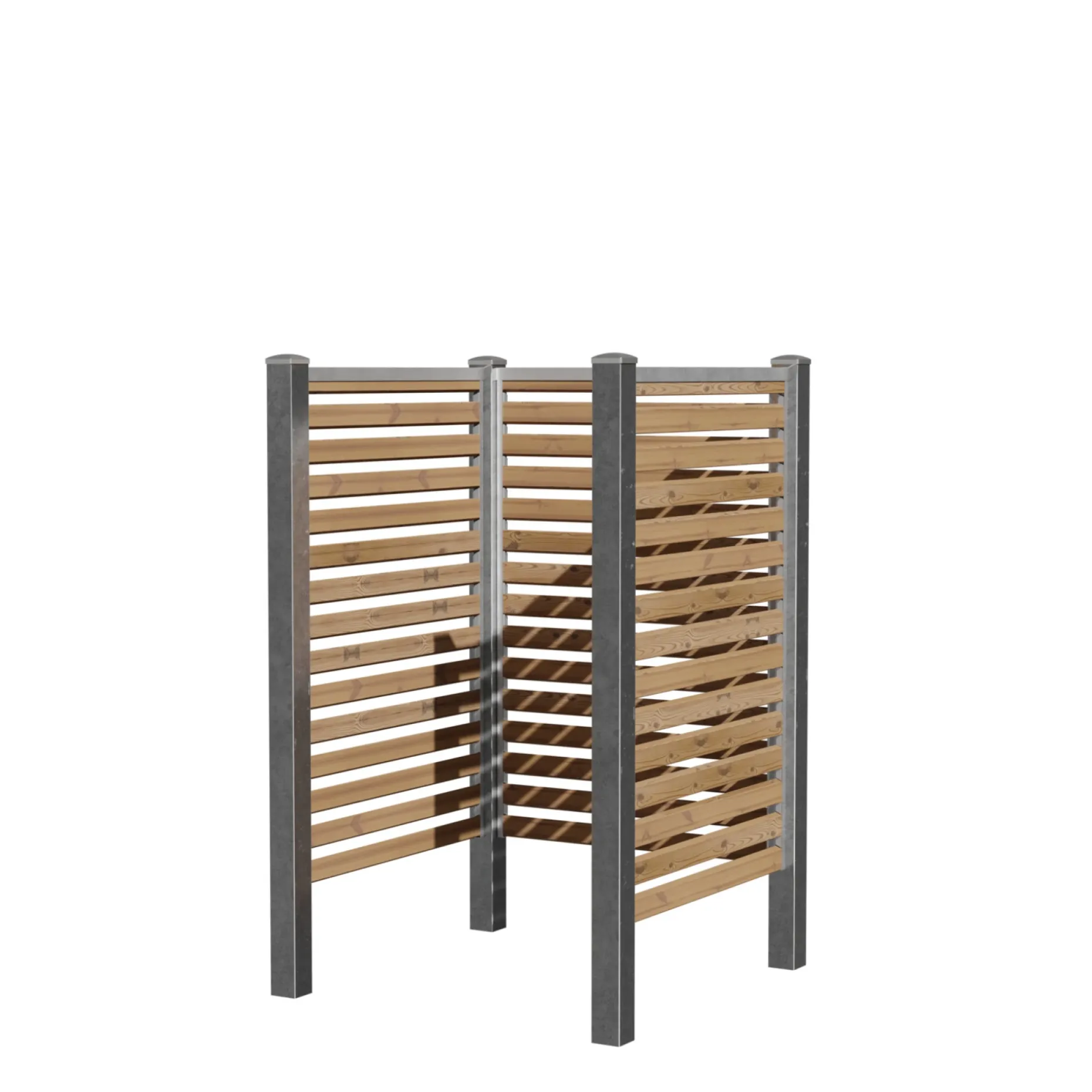 Wimex Afskærmning – Udebruser er en lav, åben 3-sidet model designet til at skabe et privat og stilfuldt udendørs bruseområde. Konstruktionen kombinerer varmgalvaniserede stolper med beklædning i termotræserien Trend Classic i Rombe-profil, hvilket giver et naturligt og vedligeholdelsesvenligt udseende. Den lave model passer til mindre rum hvor diskret afskærmning ønskes, samtidig med at den åbne opbygning sikrer luft og lys. Bræddeafstanden på 34 mm skaber en luftig facade samtidig med at der opnås tilstrækkelig afskærmning. Målene 107 cm i bredden og 170 cm i højden gør produktet velegnet til standard udendørs bruseinstallationer. Modellen er kendt under betegnelserne “Wimex Afskærmning – Udebruser” og “3-sider Lav Model”. Det simple, tredimensionelle design gør det nemt at integrere afskærmningen i eksisterende udendørs installationer. Den lave højde betyder, at afskærmningen diskret markerer bruseområdet uden at dominere omgivelserne. Kombinationen af termotræ i Trend Classic og varmgalvaniserede stolper sikrer en harmonisk finish, hvor træets struktur og Rombe-profilen giver visuel rytme, mens stolperne sikrer stabilitet. Bræddeafstanden på 34 mm balancerer privatliv og ventilation. Velegnet til udendørs bruseområder, hvor enkel og æstetisk afskærmning ønskes.