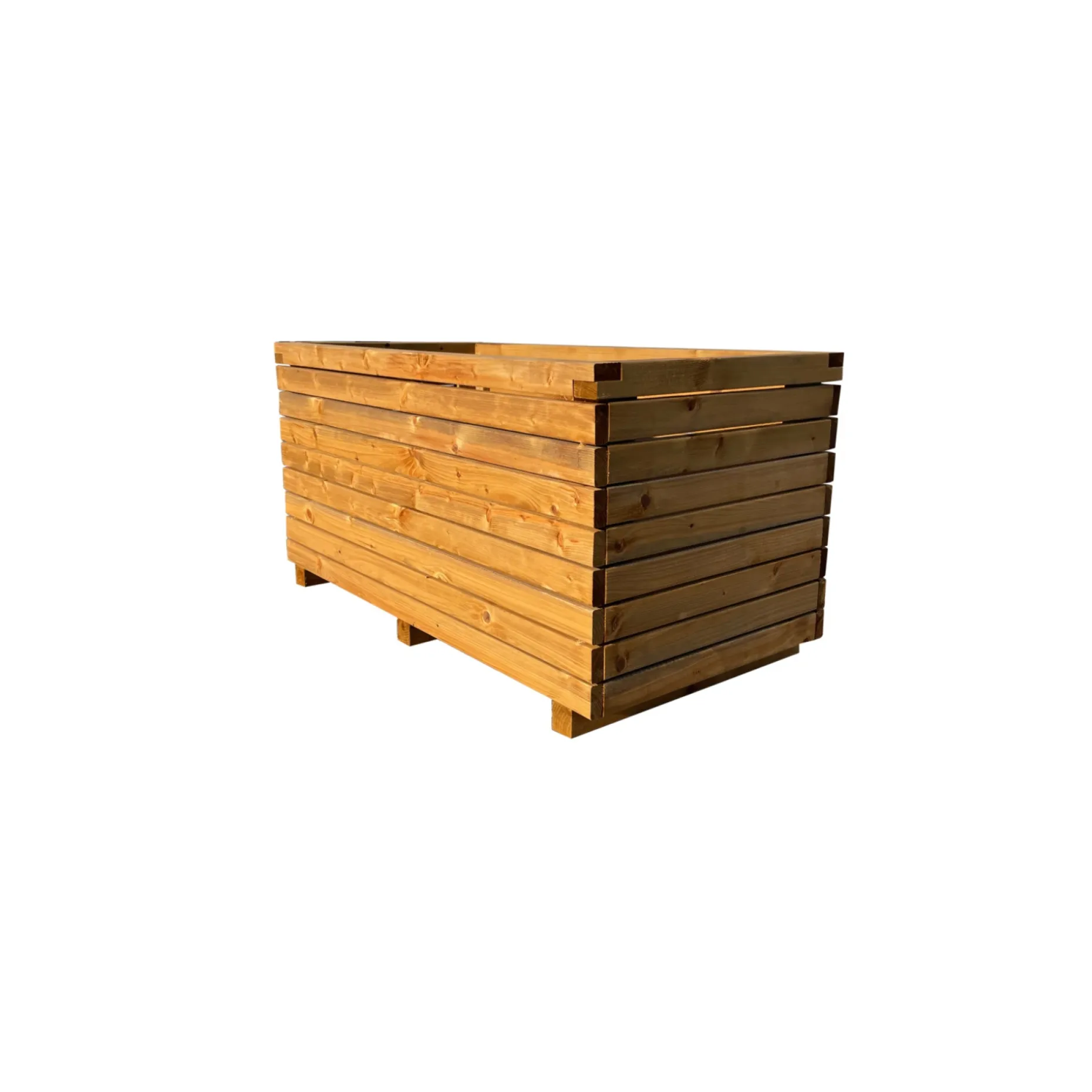 Den vandrette lamelstruktur giver et stilrent udtryk og sikrer optimal dræning. Fremstillet af trykimprægneret fyrretræ, som er både robust og vejrbestandigt.