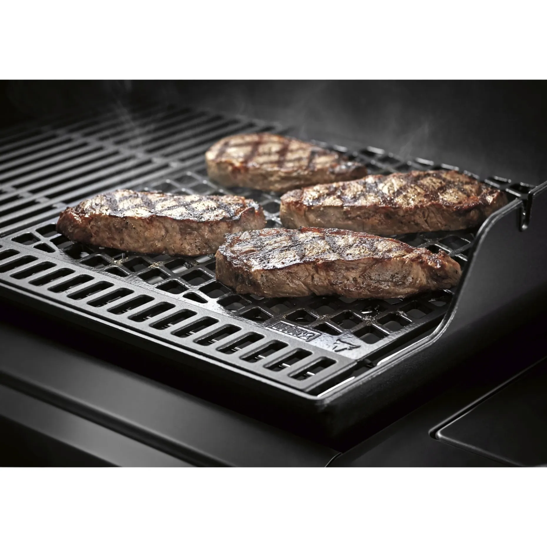 Tag dit køkken med udenfor, og lav mad, du ikke troede var mulig at tilberede på grillen. Skift den højre grillrist ud med denne dobbeltsidede støbejernsstegerist, og grill steaks, fisk og skaldyr i din baghave. Den dobbeltsidede stegerist giver to anvendelsesmuligheder, så du kan tilpasse overfladen til forskellige råvarer og tilberedningsmetoder. Brug den til intens stegning af kød eller til mere skånsom tilberedning af fisk. Resultatet er tydelig grillkarakter og saftige råvarer med god smag og præsentation. Stegeristen åbner for flere muligheder i udendørs madlavning og udvider det, du kan lave på en grill i haven. Den er udviklet til brug i WEBER CRAFTED-systemet, hvorfor en WEBER CRAFTED-kompatibel grill, -ramme og -riste er påkrævet for korrekt brug. I din baghave kan du skifte risten for at skabe nye retter og variation i grillmenuen. Den dobbeltsidede funktion giver fleksibilitet til både hurtige og langsomme tilberedninger og gør det muligt at eksperimentere med forskellige teksturer. Målene hjælper dig med at vurdere pladsbehovet i grillrammen ved udskiftning.