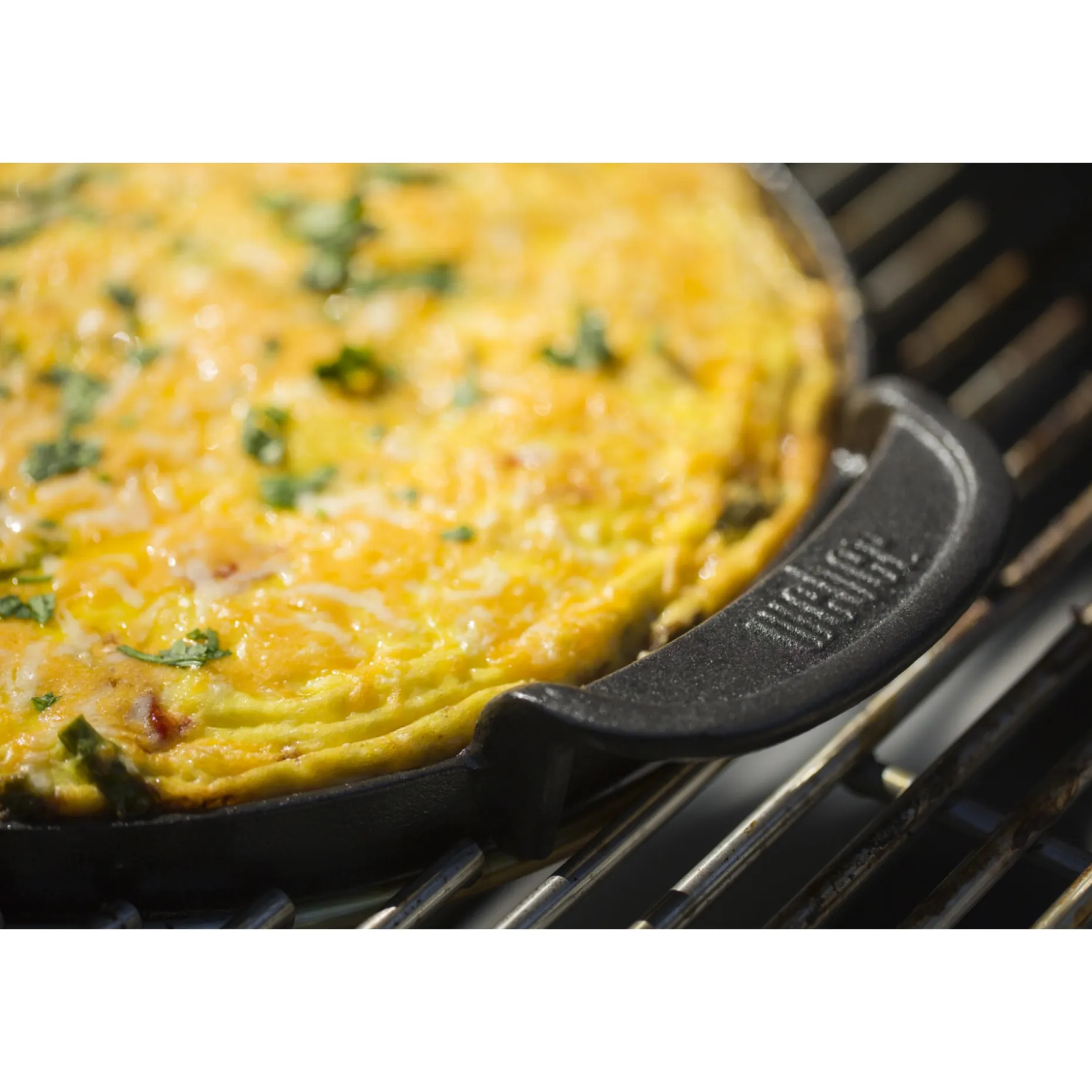 Den sorte støbejernsoverflade bevarer varme, så du kan stege bøffer med god stegeskorpe, lave pandekager eller tilberede deep pan pizza direkte på grillen.