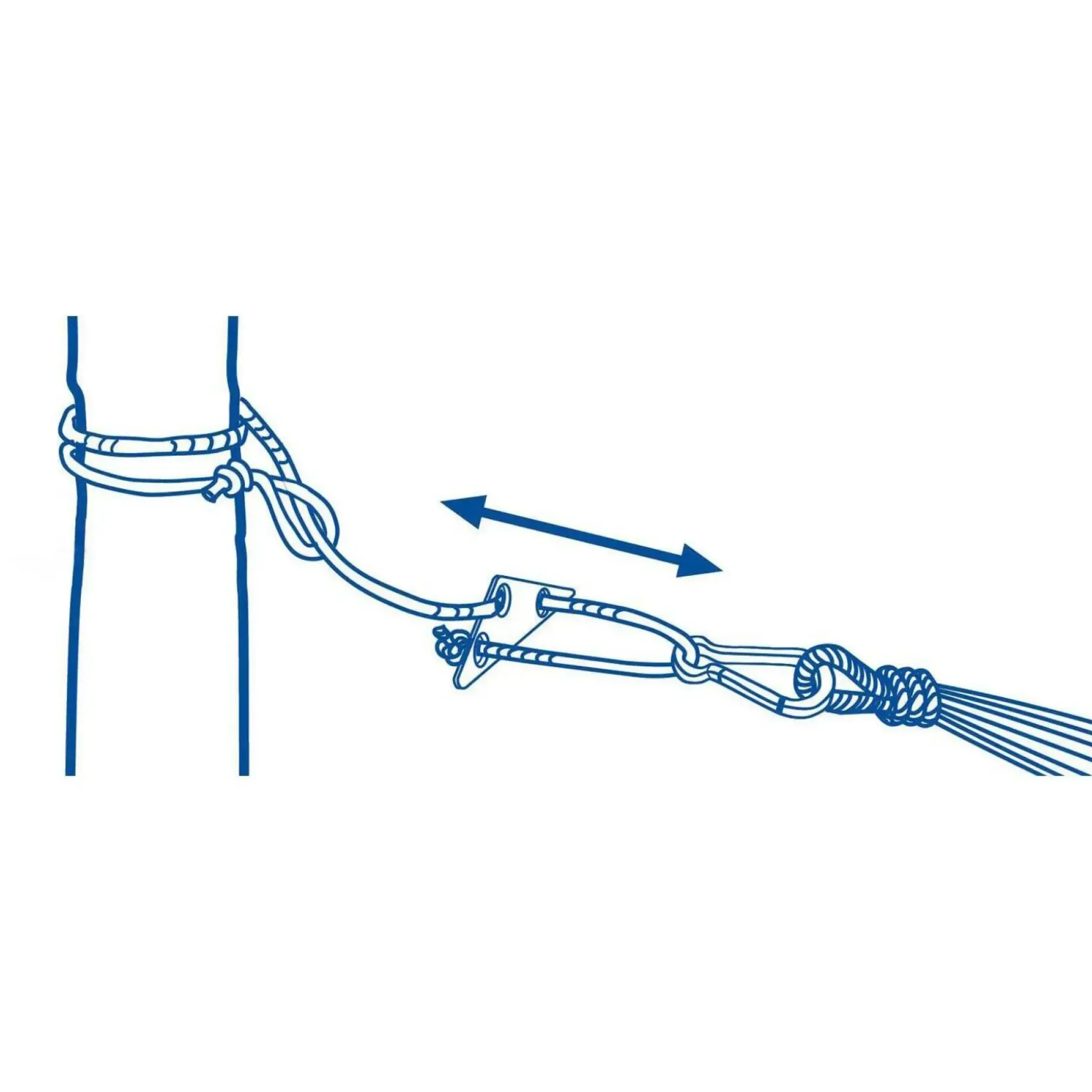 Wimex reb med opstrammer er til ophæng af hængekøje. Rebets opstrammer og karabinhage gør det nemt at justere højden uden at binde knuder.