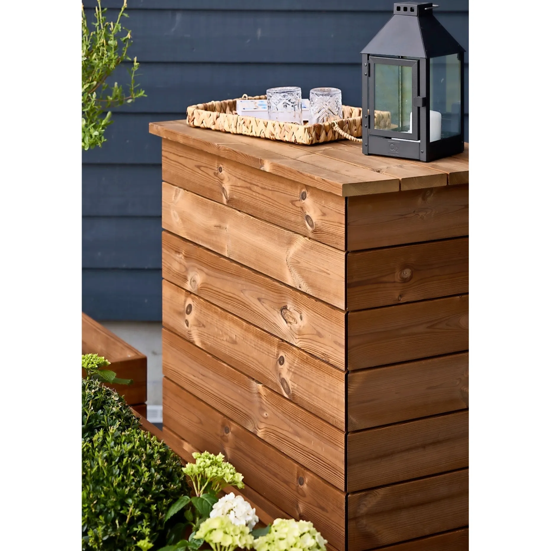Plantekasser kan sammensættes i forskellige højder og størrelser, så du kan skabe personlige rum, niveauforskelle og opbevaringsløsninger.