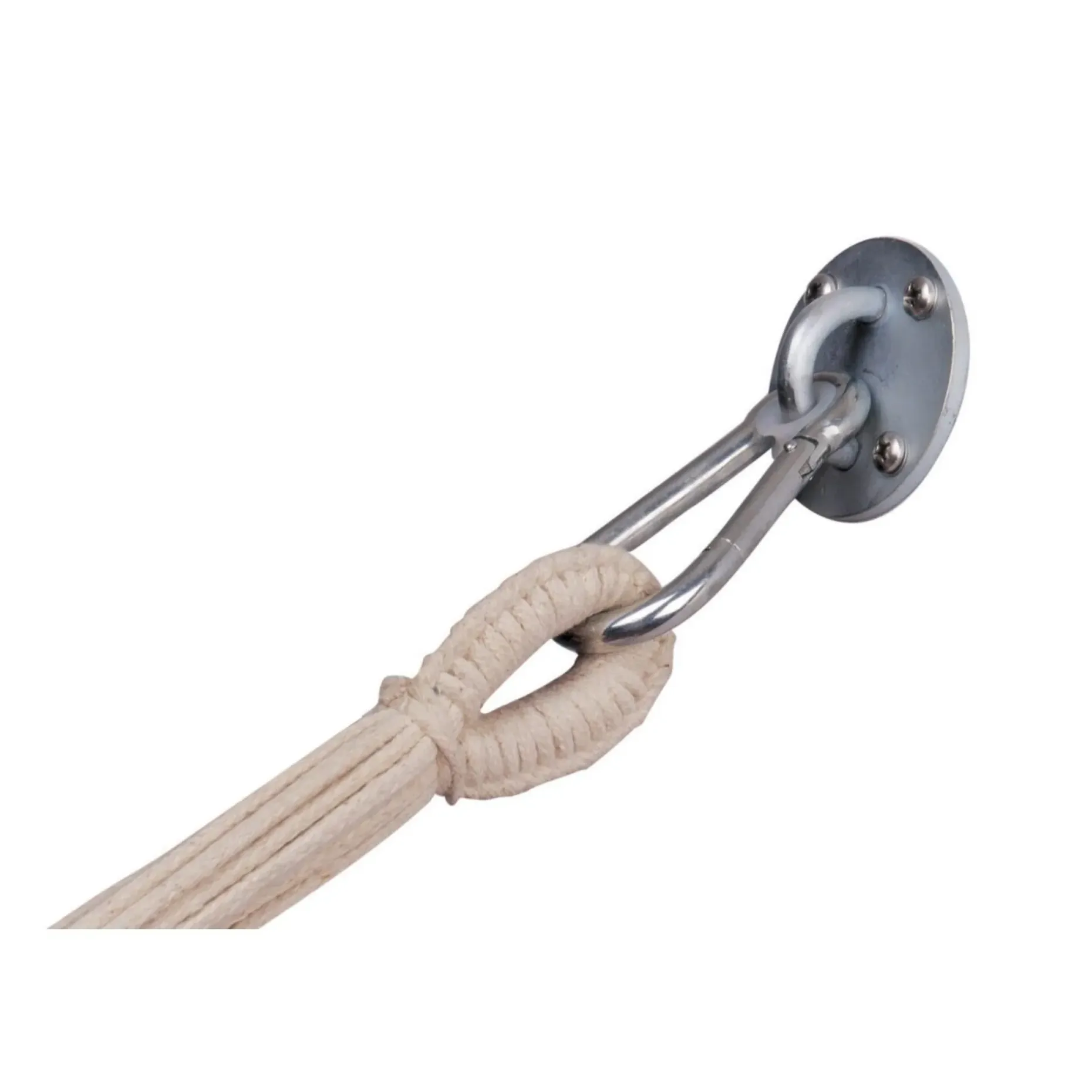 Krogen gør det nemt at hænge og afmontere din hængekøje, da karabinhagen giver hurtig tilkobling. Nylonringen bidrager til en mere jævn bevægelse og mindsker risikoen for knirkelyde ved bevægelse i køjen.