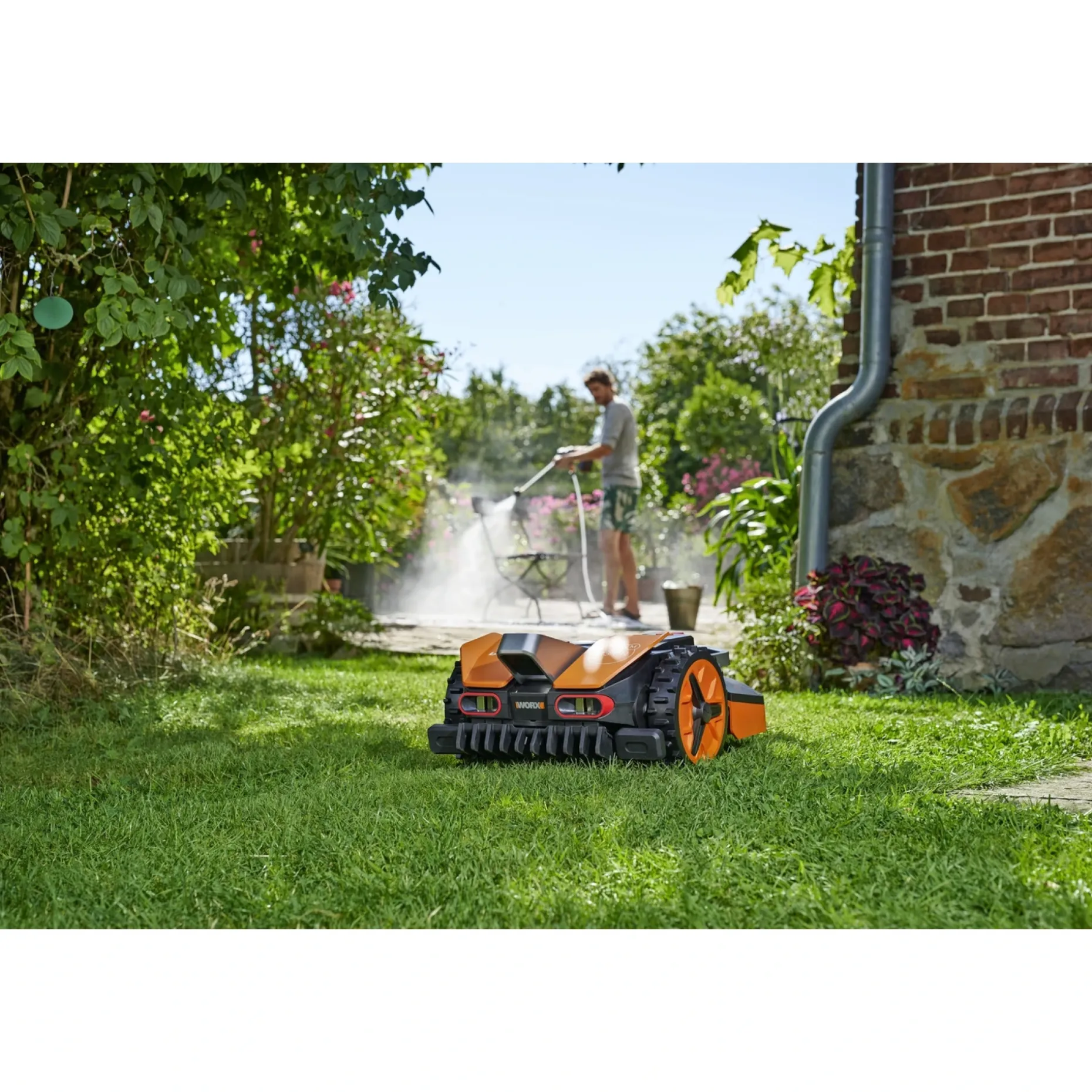 Med klippebredde 18 cm og tre roterende knive leverer den effektiv klipning og kantklipning, så manuel kanttrimning undgås. Automatisk opladning og individuel daglig klippeplan sikrer et ensartet og velplejet resultat uden løbende manuel indgriben.