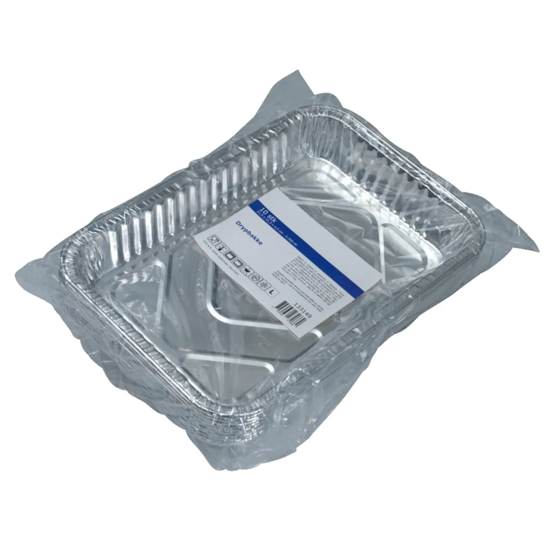 Aluminiumsbakke i rektangulært format til madlavning og til opsamling af fedt og væske. Den findes i to kapaciteter, 2200 ml og 2400 ml, så du kan vælge efter portionsstørrelse og opbevaringsbehov.