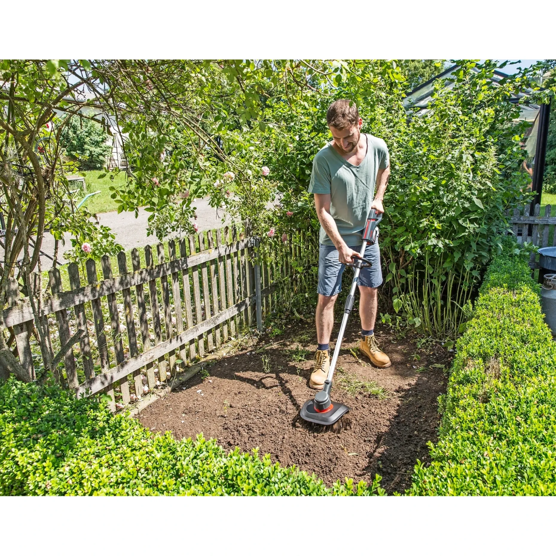 TL 1820 er en batteridreven kultivator, der kan benyttes til at bearbejde, smuldre og løsne jorden. Arbejdsbredden på 20 cm og de robuste metalknive gør det også muligt at bruge den til at luge ukrudt i staudebedet eller mellem rækkerne i køkkenhaven. TL 1820 har delbart skaft, som gør det muligt at opbevare kultivatoren på den mest hensigtsmæssige måde. Takket være den lave vægt er den nemmere at arbejde med end en klassisk kultivator. AL-KO´s 18V serie tilbyder en række maskiner til forskellige formål, brug samme batteri og oplader til hele serien.