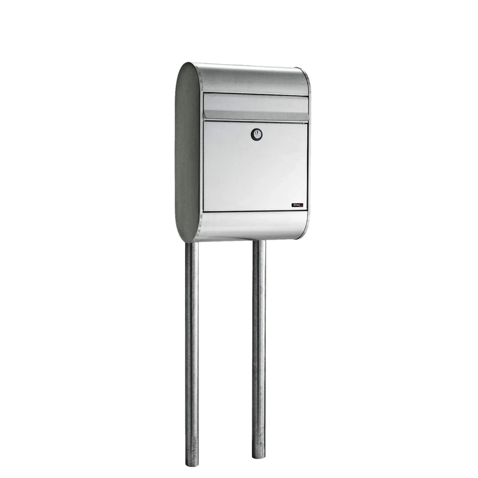 Overfladen er galvaniseret, og postkassen fremstår præsentabel og flot, så den passer fint i de fleste indkørsler.