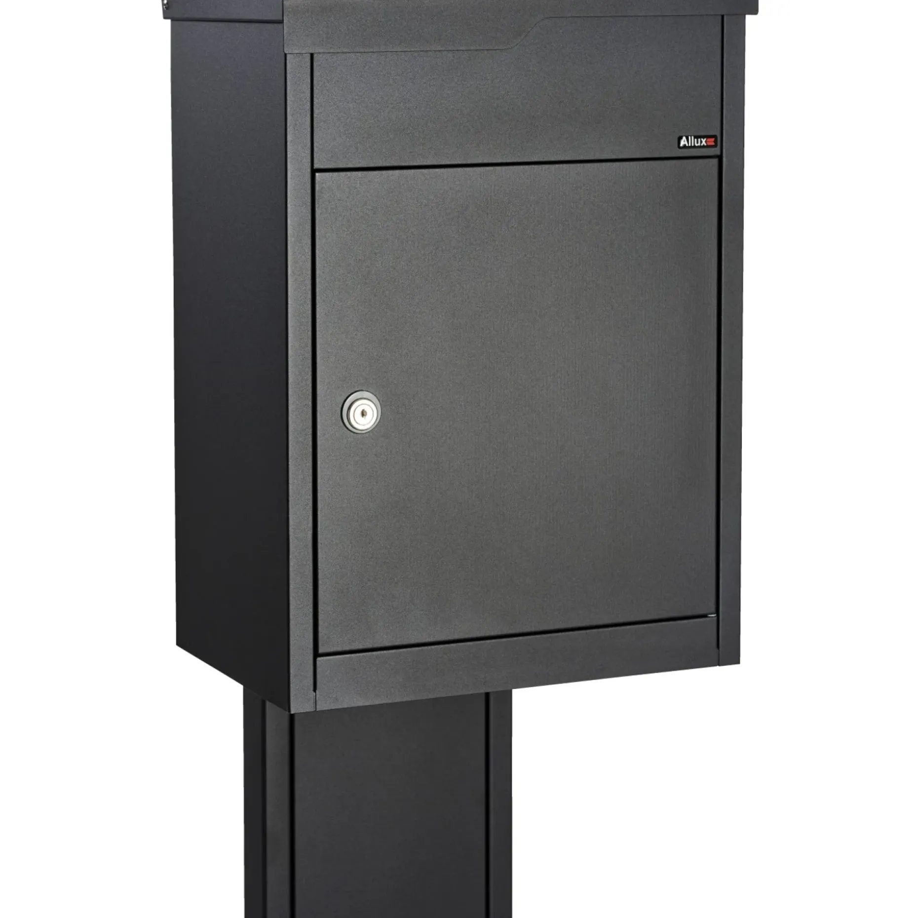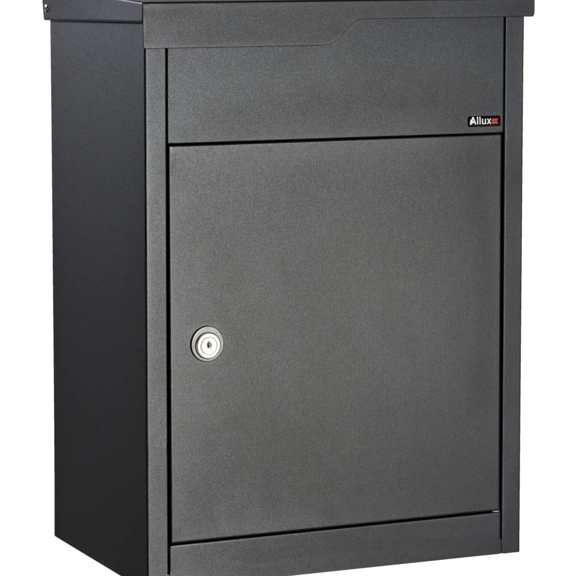 Flot og elegant pakkepostkasse i Allux 560S til private indgange. Kassen er fremstillet i galvaniseret, pulverlakeret stål i sort og præsenterer et strømlinet design. Leveres med cylinderlås og mulighed for at udskifte til rukolås.