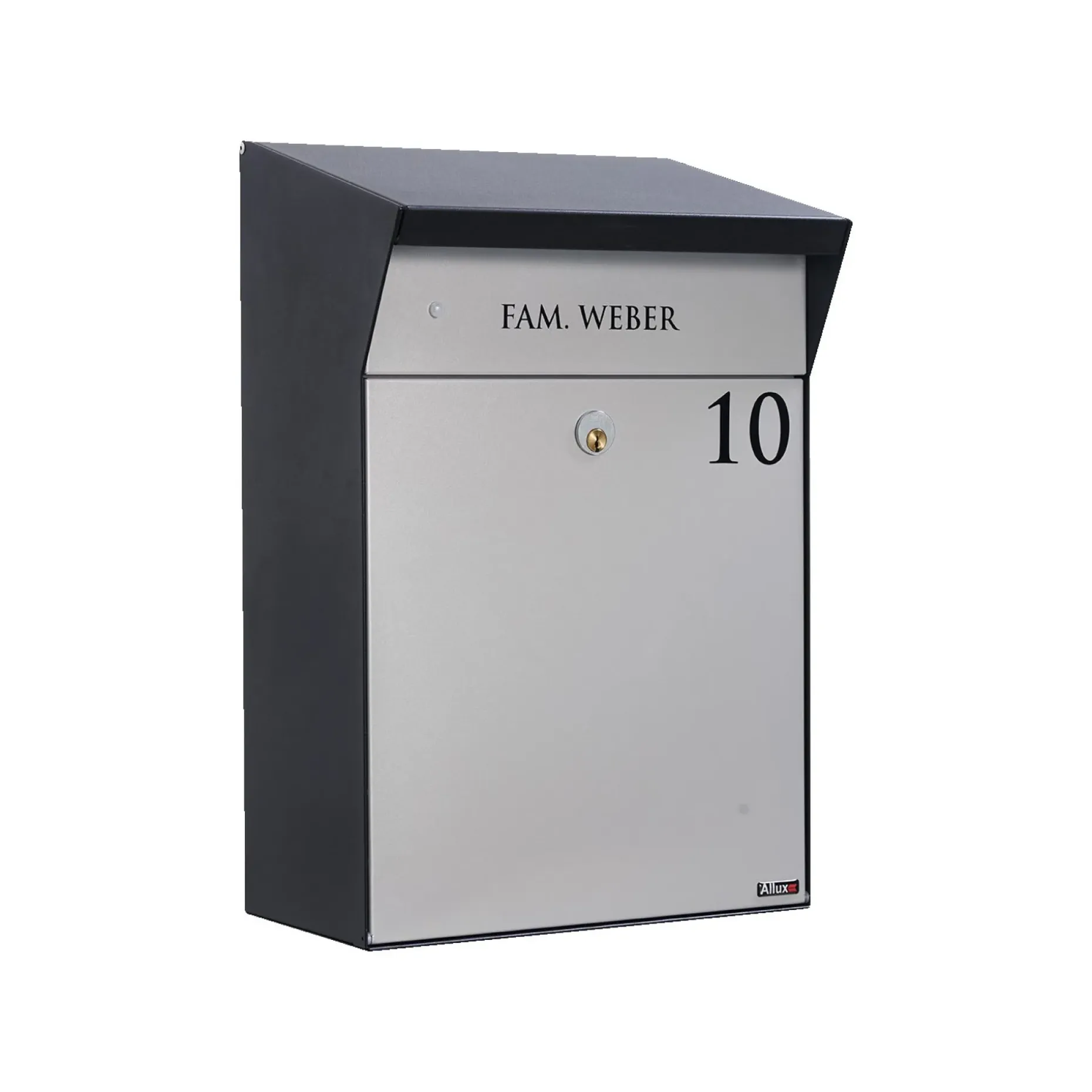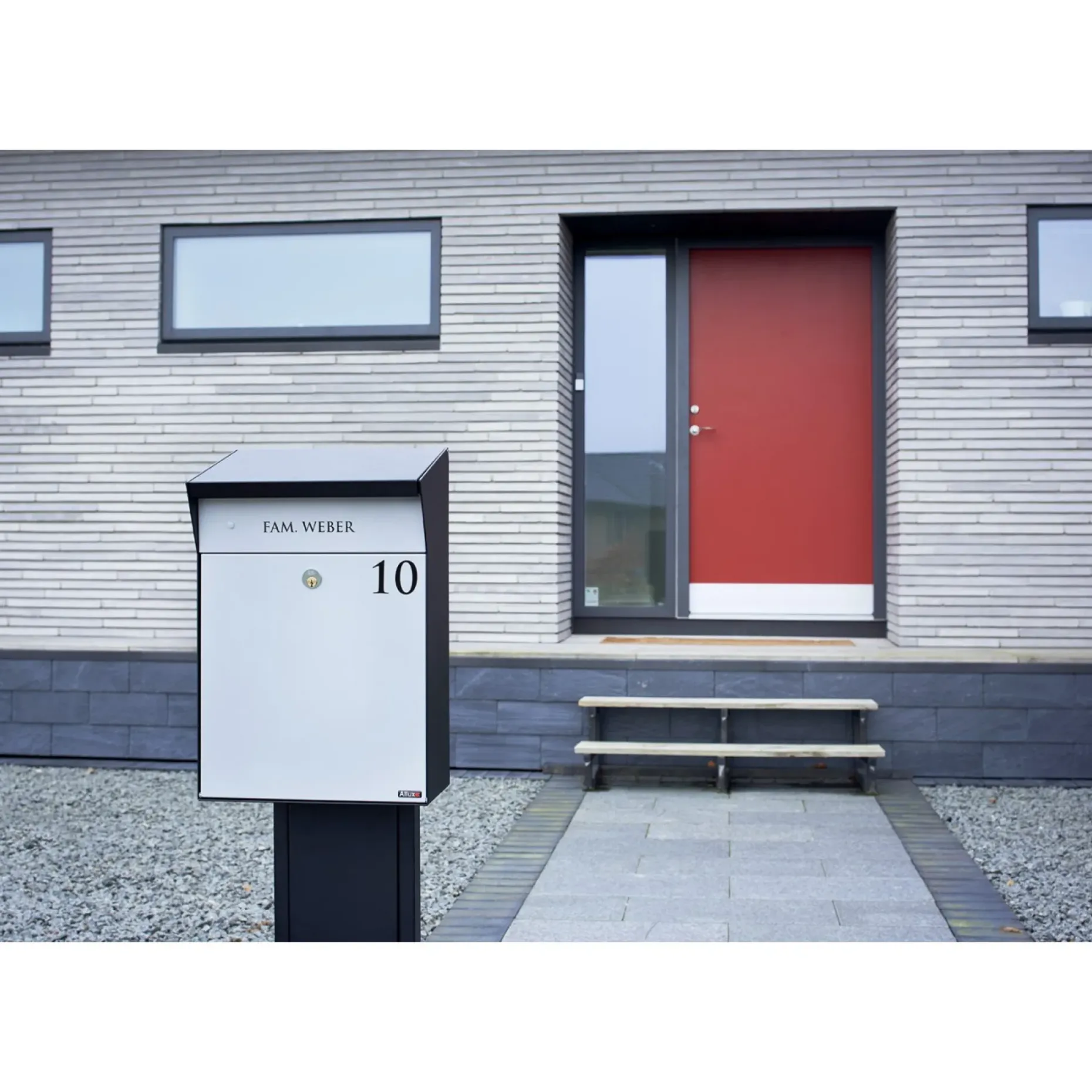 ALLUX Bjørn pakkepostkasse er udviklet i samarbejde med Christian Bjørn og tilbyder samme flotte design som Bjørn Parcel med et let skrånende tag. Postkassen er fremstillet i galvaniseret pulverlakeret stål med sort krop og grå front, hvilket giver et stilrent udseende ved indgangspartiet.
