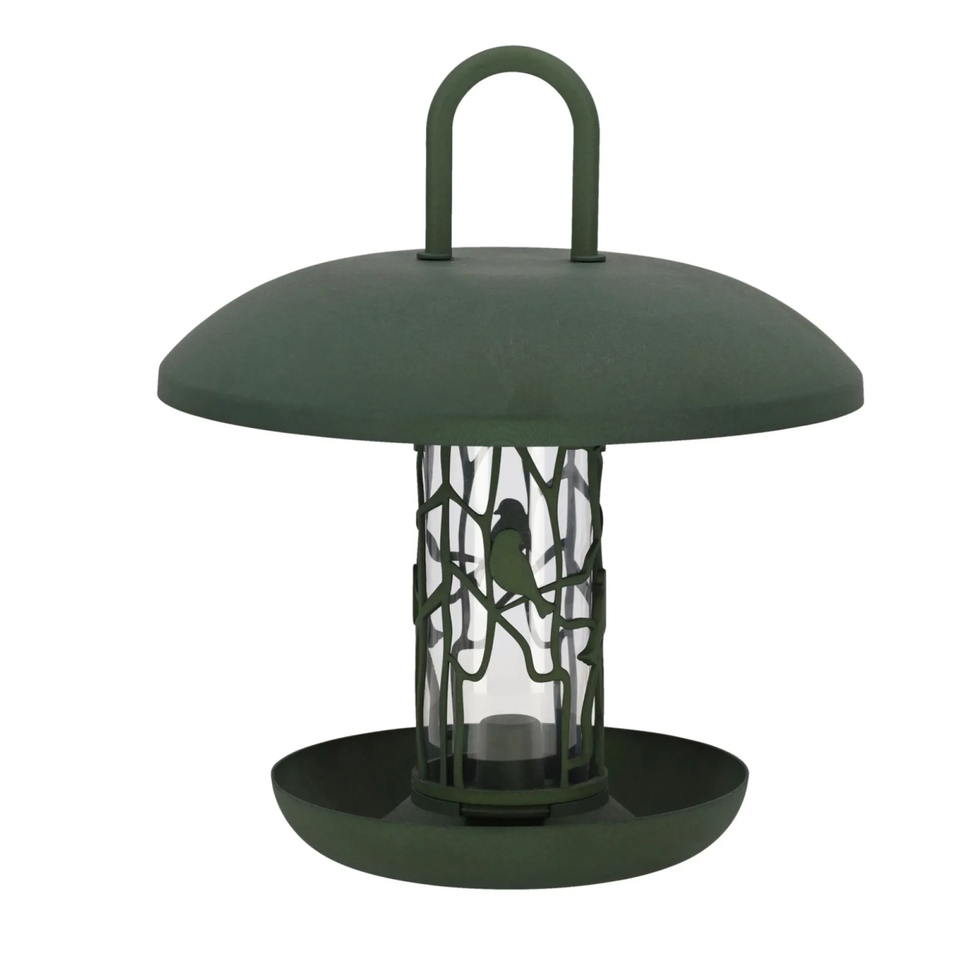 Gardenlife Foderautomat er en fodreautomat til ophæng, designet til vildtfuglefrø. Den har en skål og et tagudhæng, som beskytter foderet mod vind og regn og giver nem adgang for små fugle. Materialet er 100% genbrugsplast, hvilket giver en holdbar og let rengøringsvenlig konstruktion.