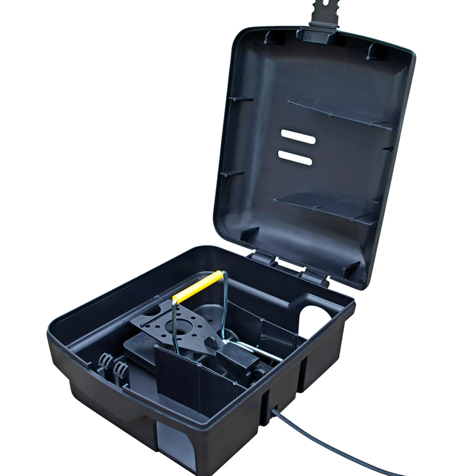 De dobbelte fjedre sikrer en hurtig og pålidelig udløsning af smækmekanismen, hvilket giver effektiv fangst ved kontakt med ådsel eller fældeanordning. Låsbart låg gør det muligt at sikre fangsten før bortskaffelse og reducerer risiko for kontakt.