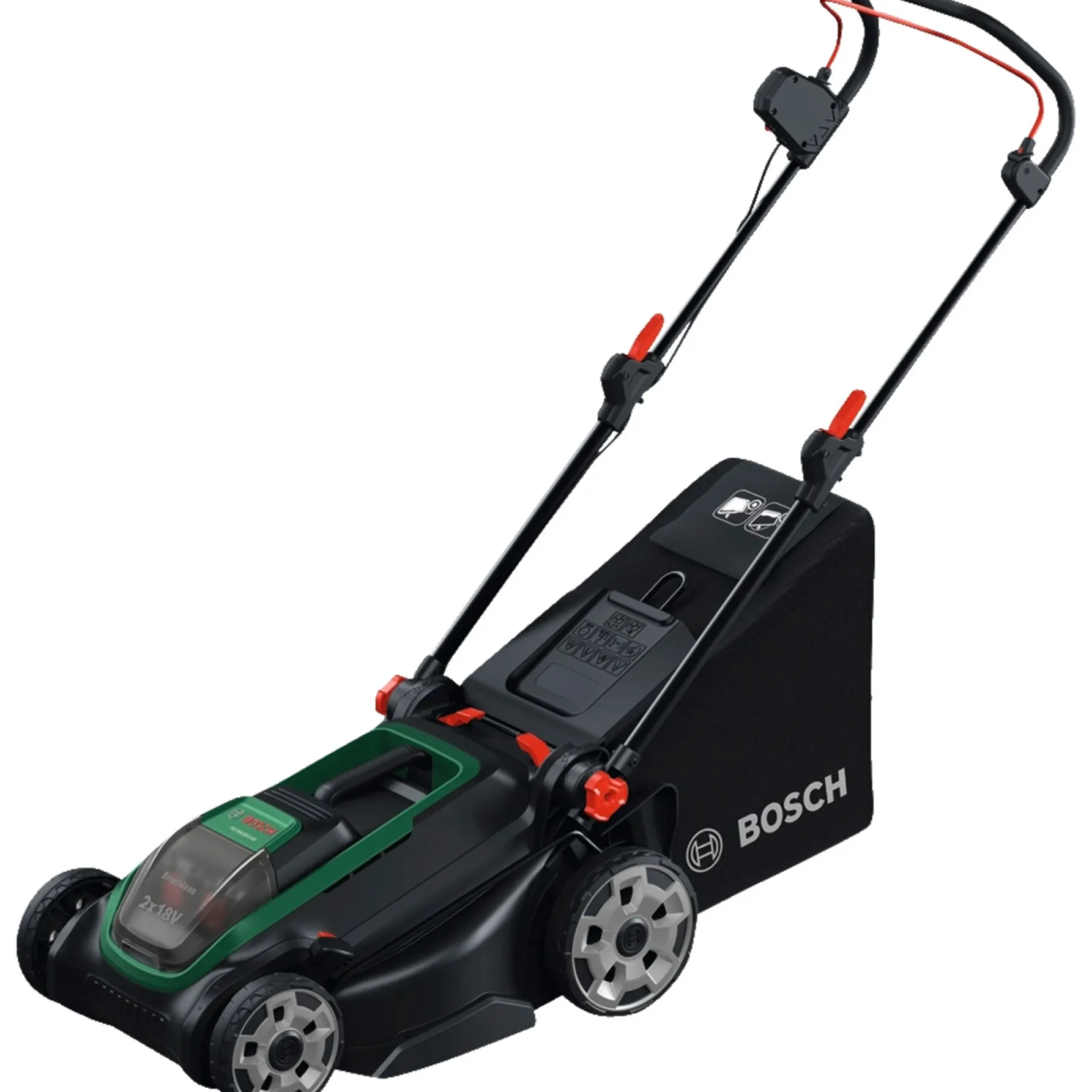 Kraftfuld 3-i-1-plæneklipper med 43-cm-klinge, designet til mellemstore og større græsplæner. 2 x 18-V-batterier leverer 36-V-effekt for længere driftstid, og den kulfrie motor giver høj ydelse og længere motorlevetid.