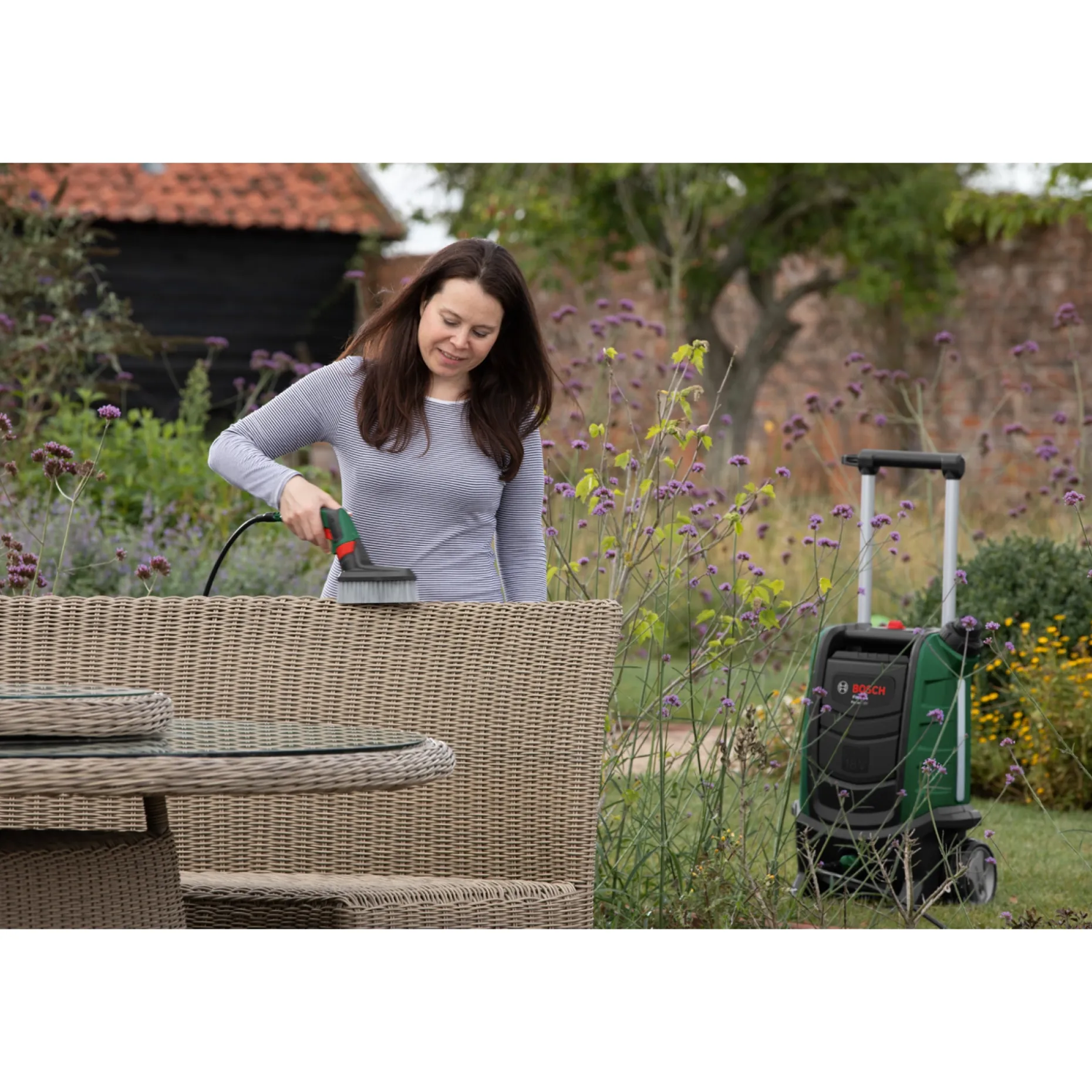 Opsætningen er hurtig, og den ledningsfrie konstruktion kombineret med stor manøvreevne gør det muligt at opnå hurtige resultater uden besvær. Punktstråle fjerner genstridigt smuds, 15°-viftestrålen giver præcision på mindre områder, 50°-viftestrålen egner sig til afbrusning af større flader, og brusestrålen passer til skånsom vask.