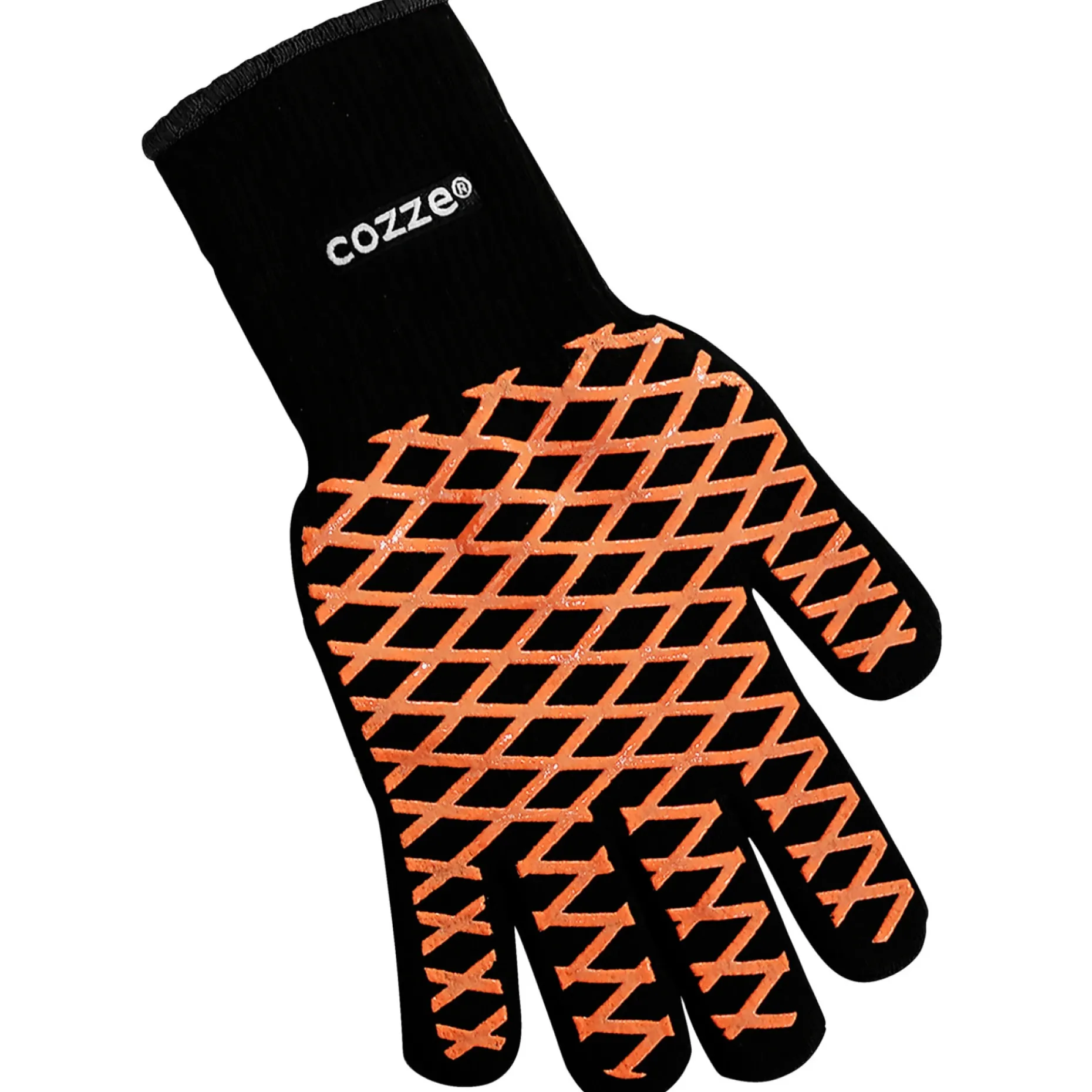 COZZE GRILLHANDSKE er en pizzahandske designet til sikker håndtering af varme redskaber og mad ved grill og i stenovn. Handsken beskytter dine hænder mod høje temperaturer og sikrer et fast, solidt greb om grilltilbehør og -redskaber.