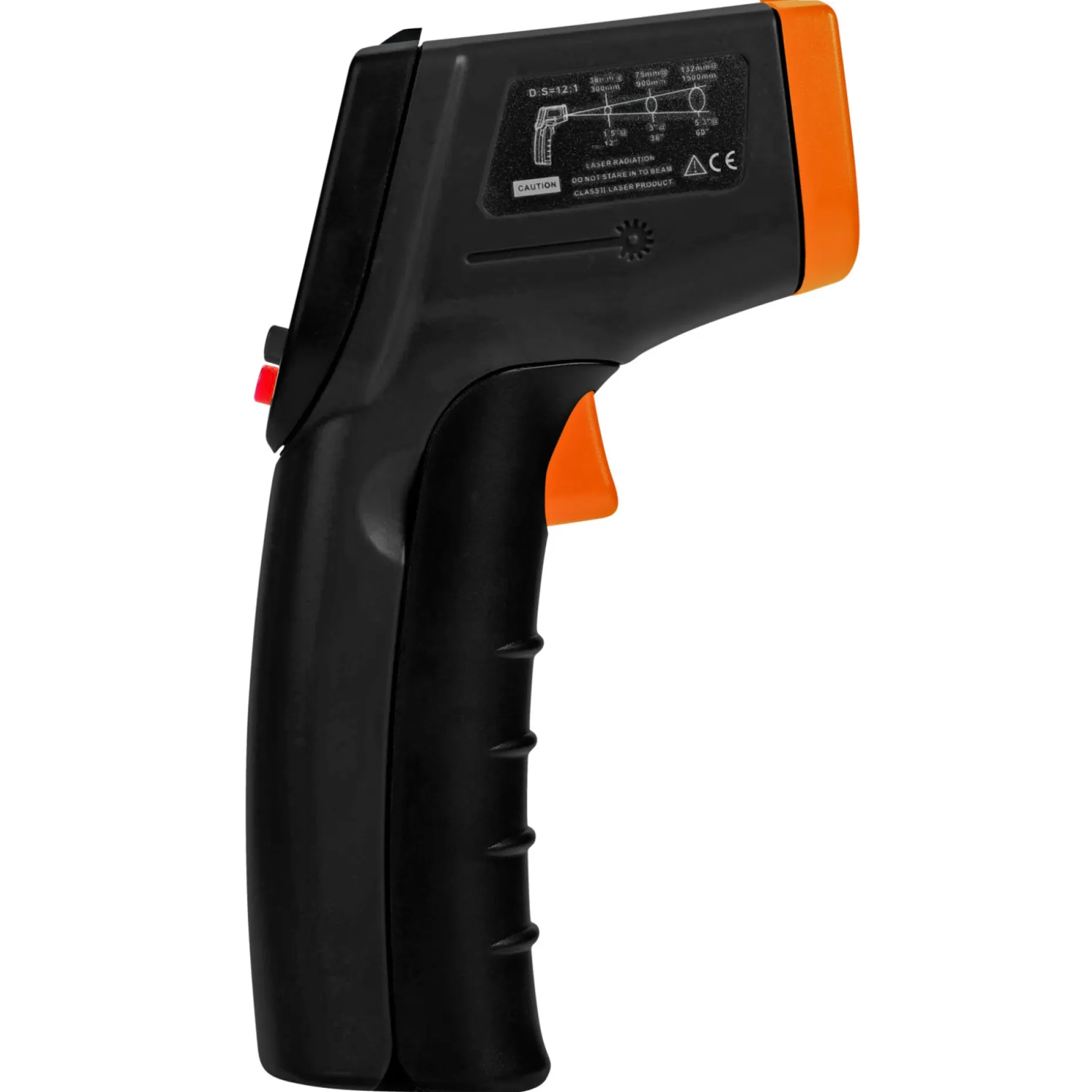 Et infrarødt termometer med pistolgreb, der måler overfladetemperatur uden berøring. Den trådløse, digitale måling påvirker ikke resultatet og giver hurtig aflæsning på et letlæseligt display.