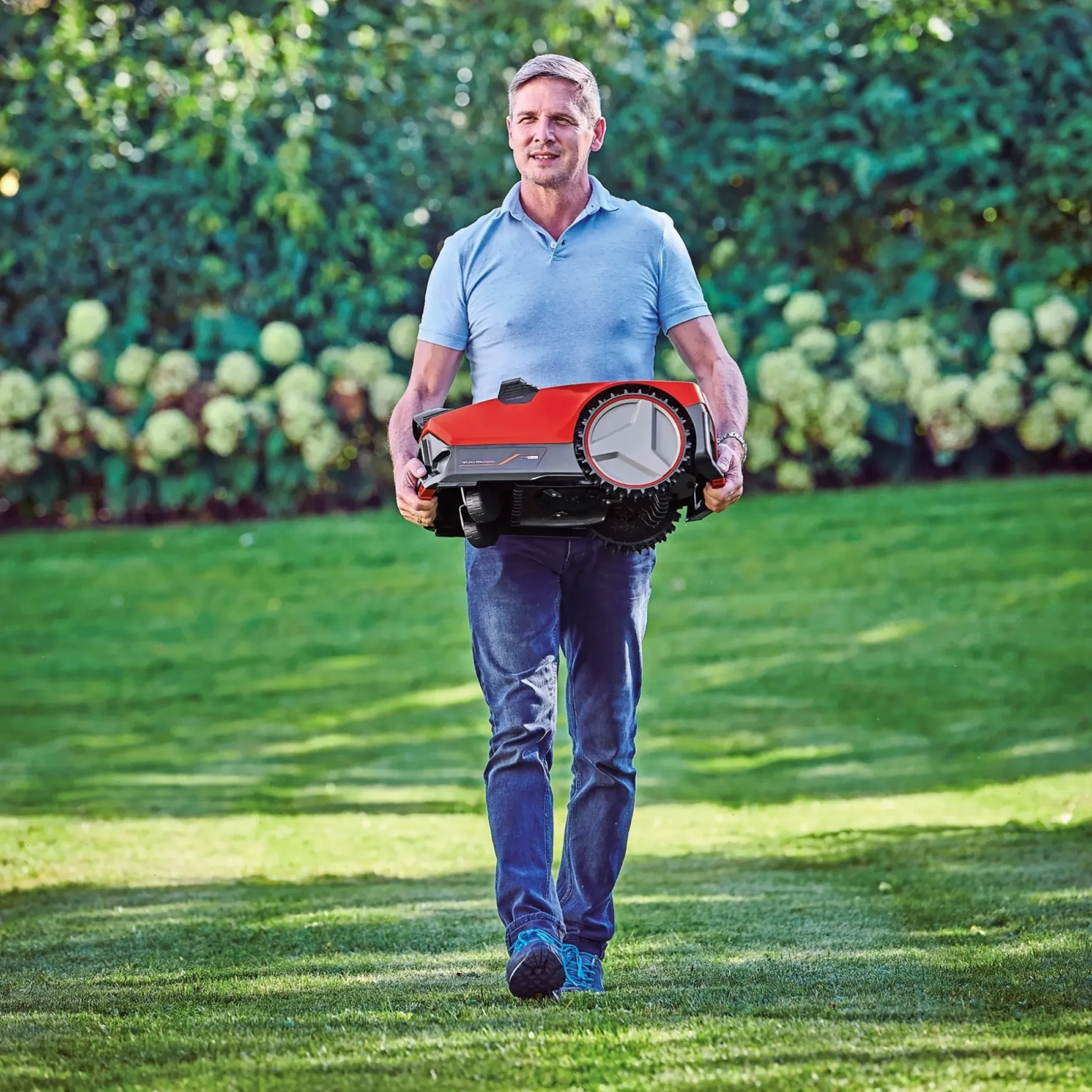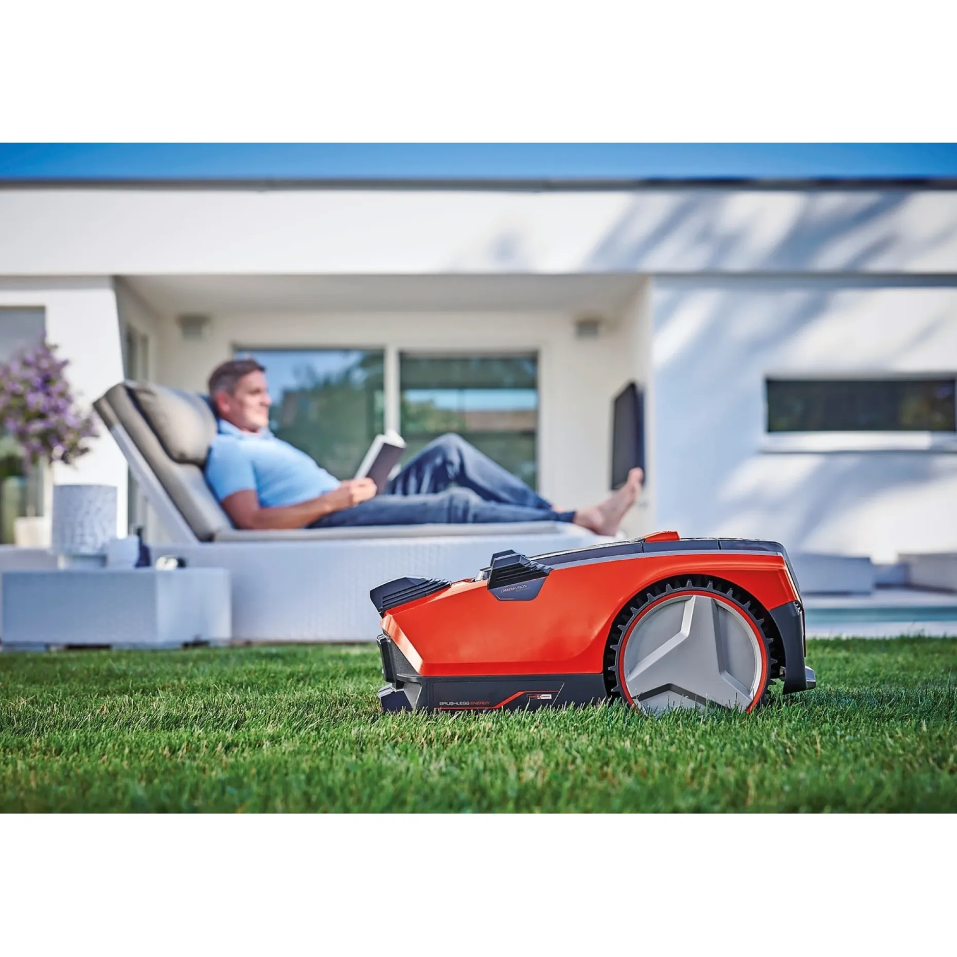 Magnetbånd kan bruges til midlertidigt at afgrænse områder. Robotten har kulfri motor for mere power og længere driftstid, et tastatur med LED-indikator til programmering af klippetider og en integreret regnsensor.