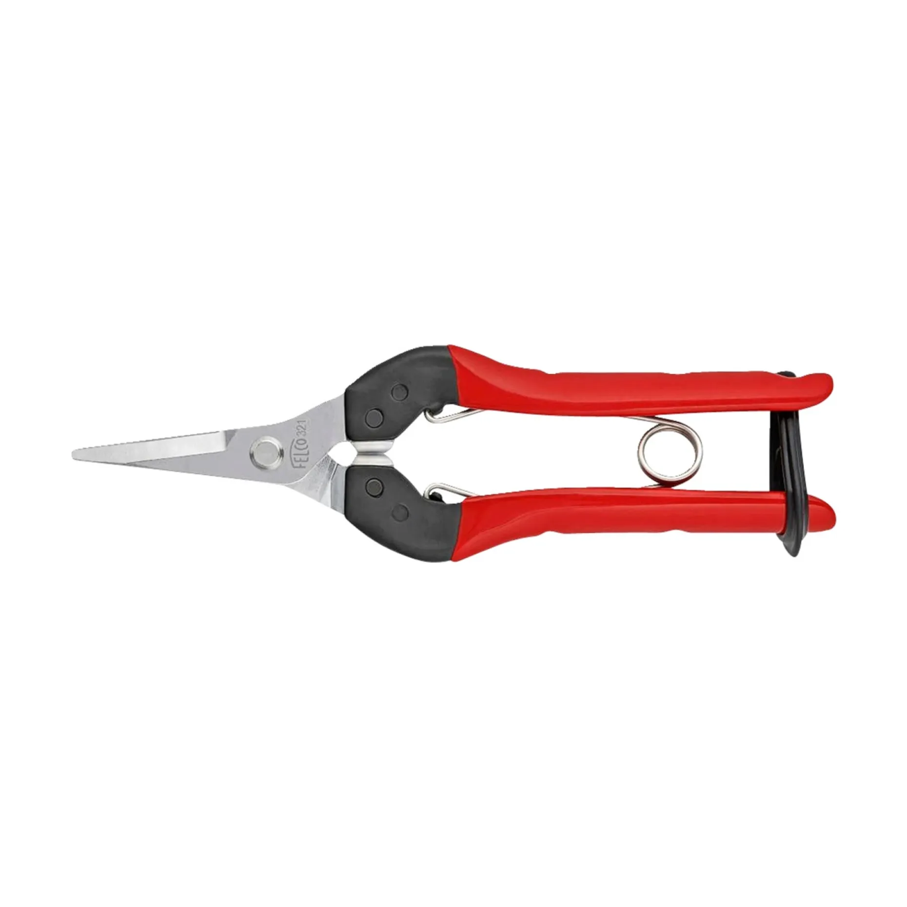 Felco 321 er en plukke- og trimmesaks med forkromede lige klinge og afrundede spidser.