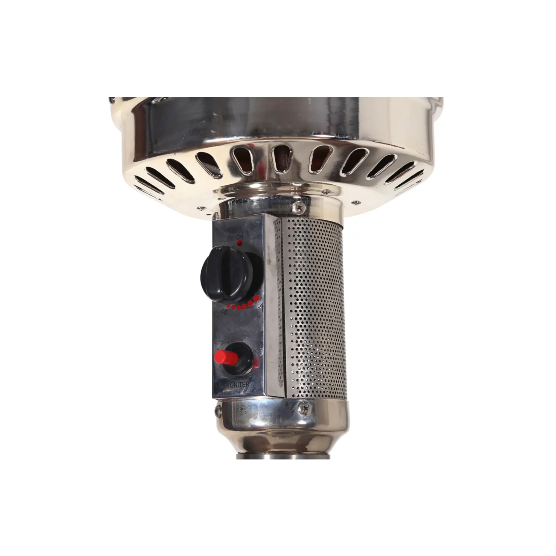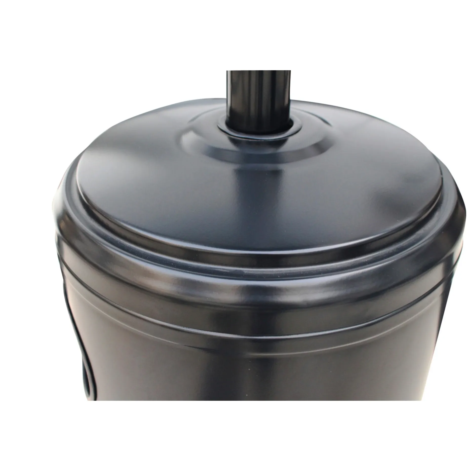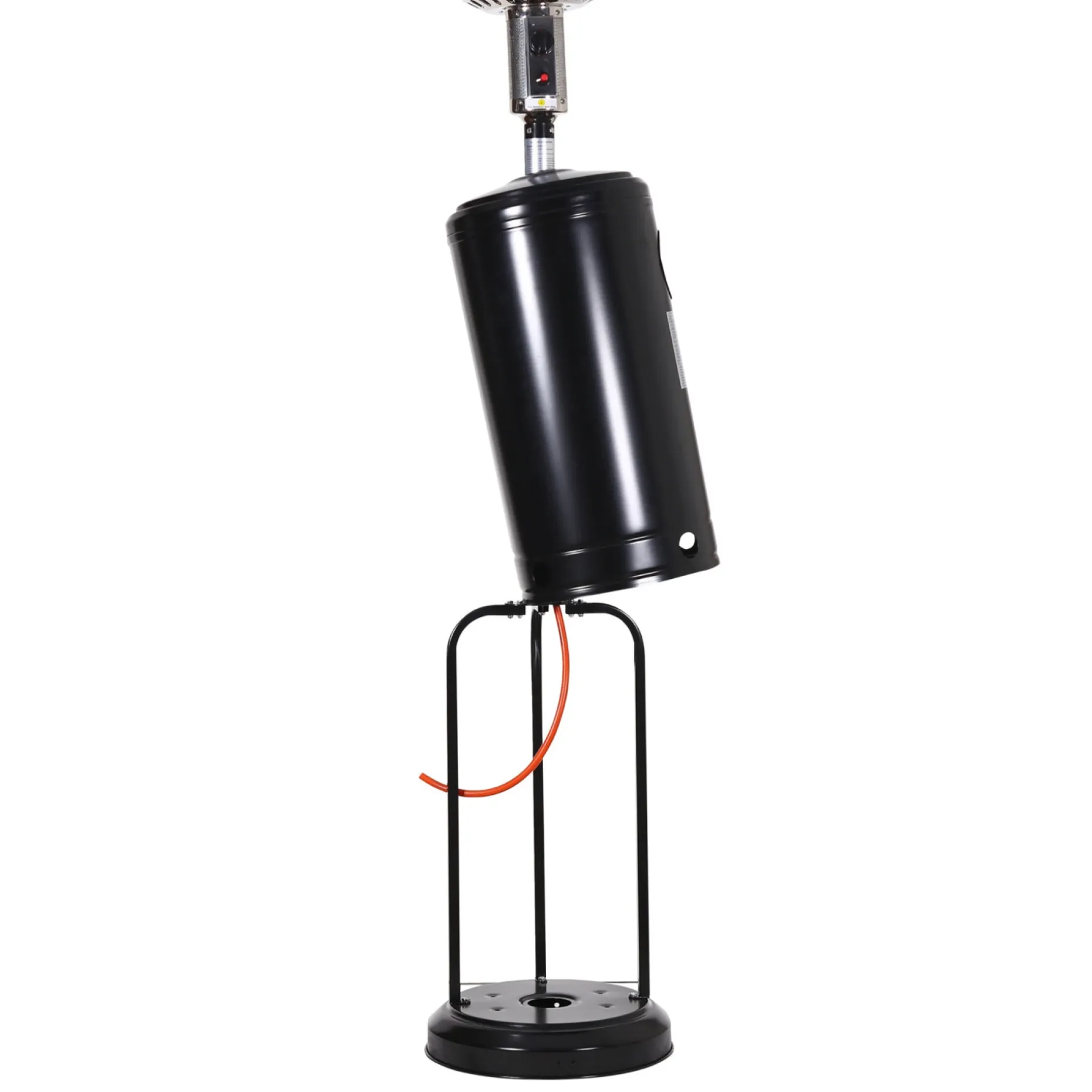 Terrassevarmeren leveres inkl. gasslange og gasregulator og er beregnet til brug med propane eller butane. Med hjul på basen er den nem at flytte efter behov.