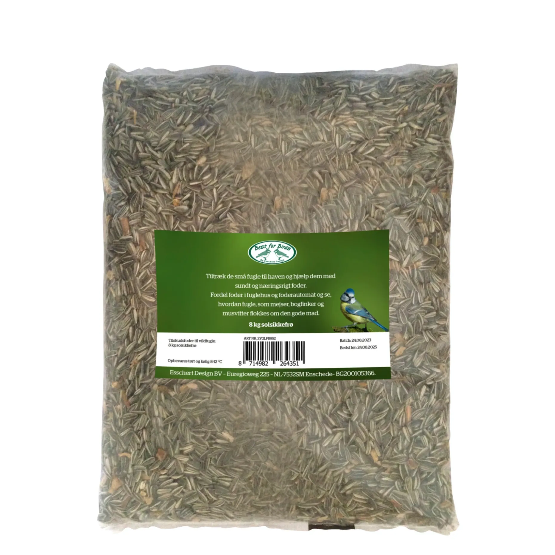 GARDEN LIFE SOLSIKKEFRØ 8 KG er 8 kg solsikkefrø til havens fugle. Gardenlife Fuglefoder 8KG leveres som sorte og stribede solsikkekerner beregnet til fodring af vilde fugle i haven.