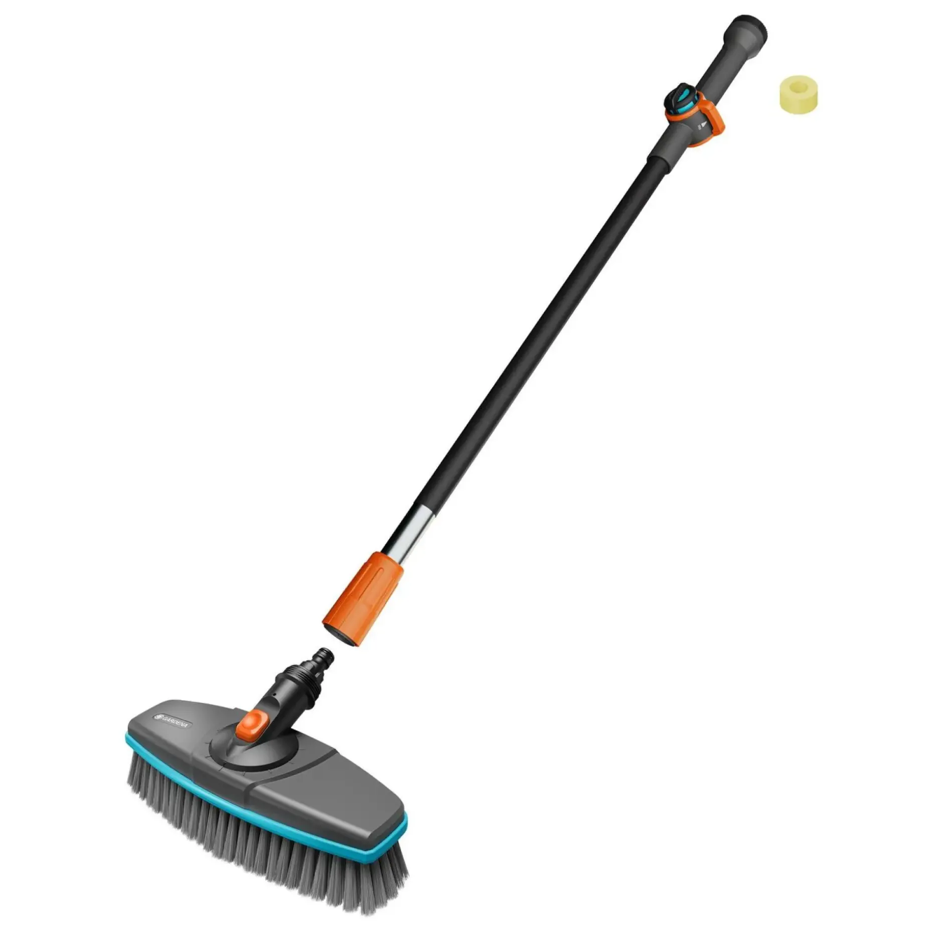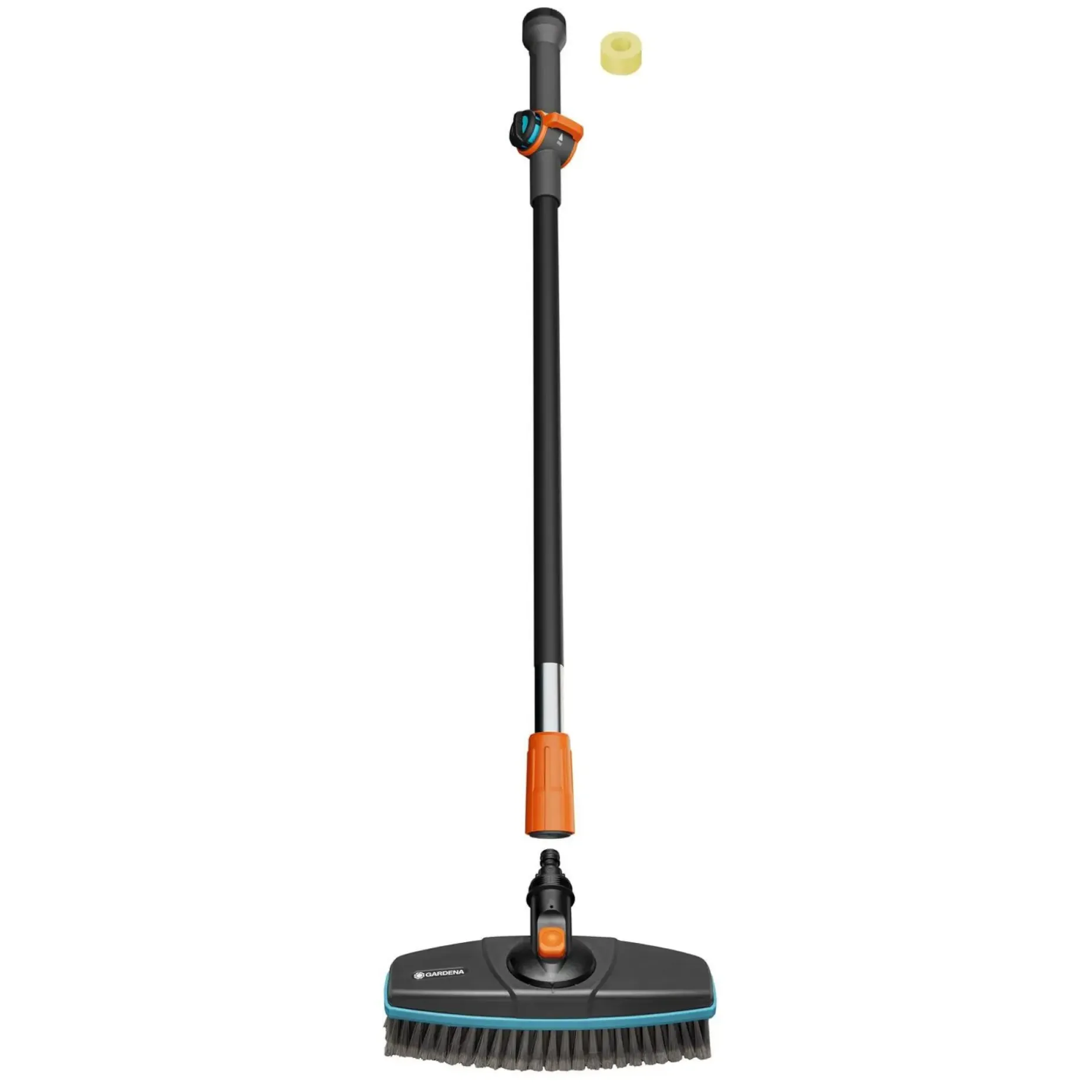 Skaftet tilsluttes vandslangen, så du får kontinuerlig vandtilførsel og sæbe ved rengøring af større flader.