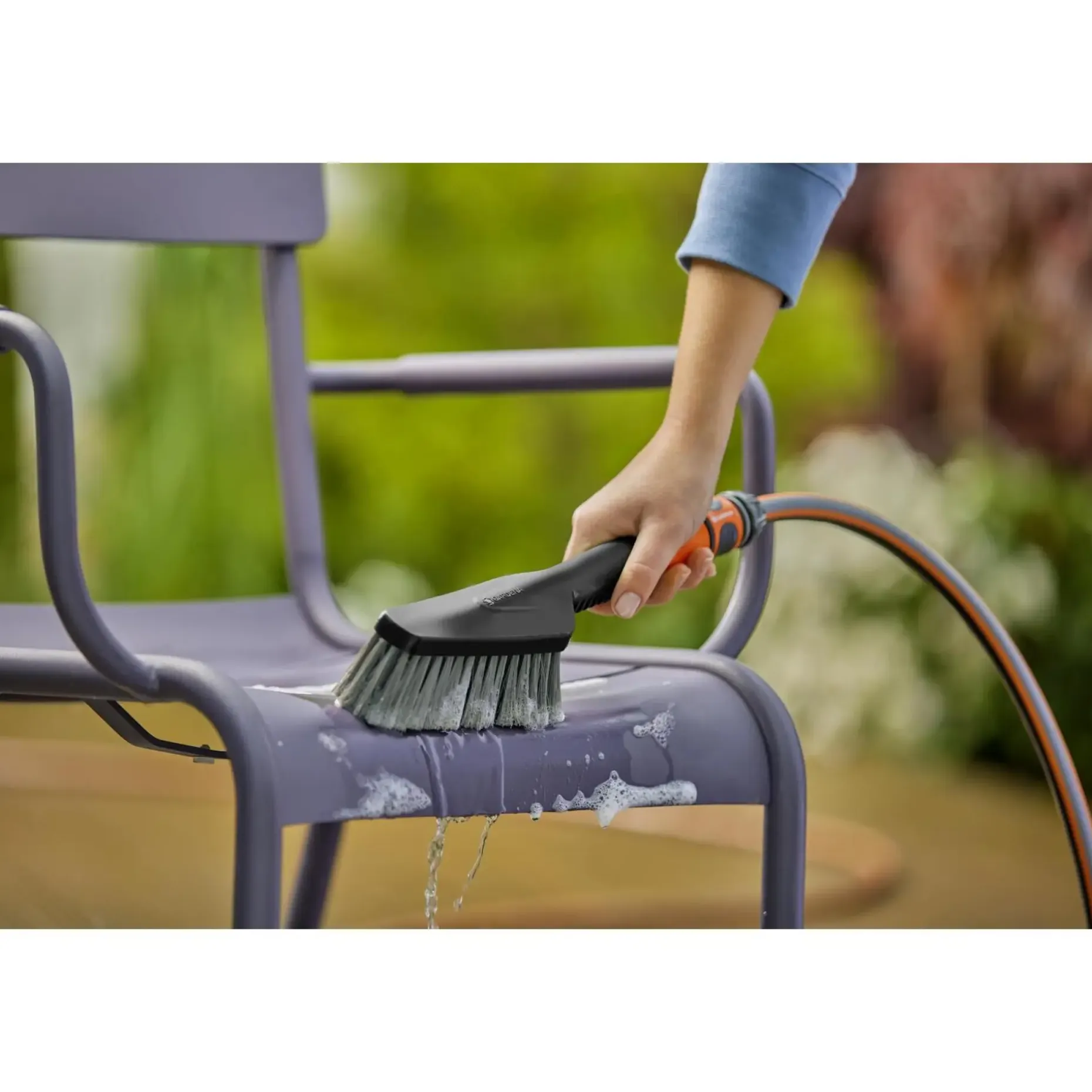Kombinationen af den bløde håndbørste og sæbestavene giver effektiv og kontrolleret rengøring af mindre udendørs artikler. Resultatet er rene flader uden unødig kraftpåvirkning, så møbler og udstyr fremstår pænere efter rengøring.