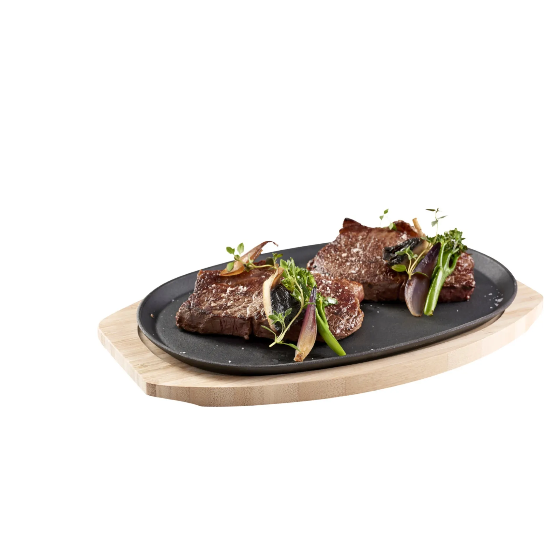 GRILLGRILL Støbejernstallerken med bordskåner i bambus