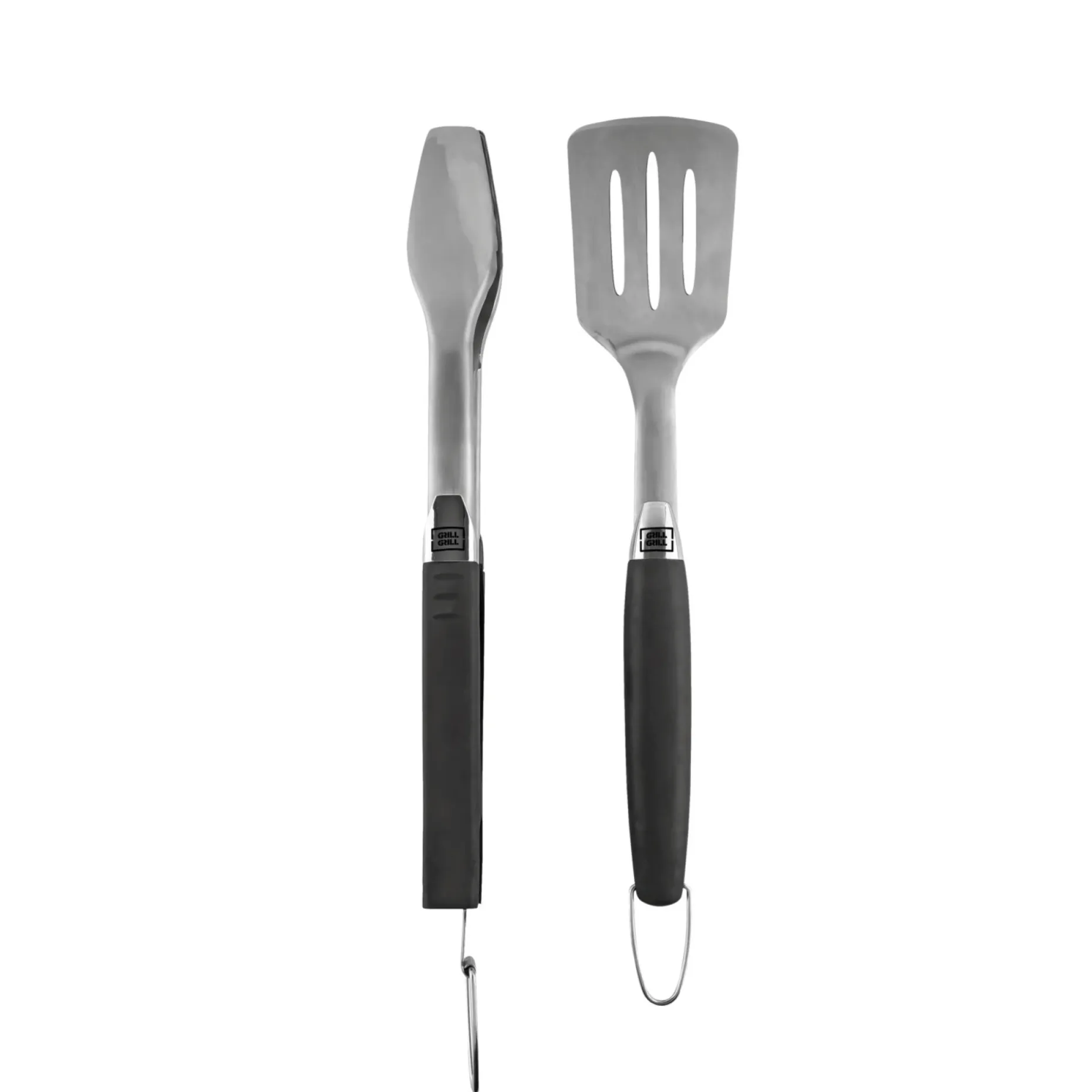 Kombinationen af tang og palet giver mulighed for både at gribe, løfte og vende større stykker samt at skubbe eller løfte mindre portioner med paletten. Sættets funktionalitet gør det velegnet til brug ved tilberedning på grill, pande eller i ovn, og den enkle mekanik i håndtaget øger sikkerheden under arbejdet.