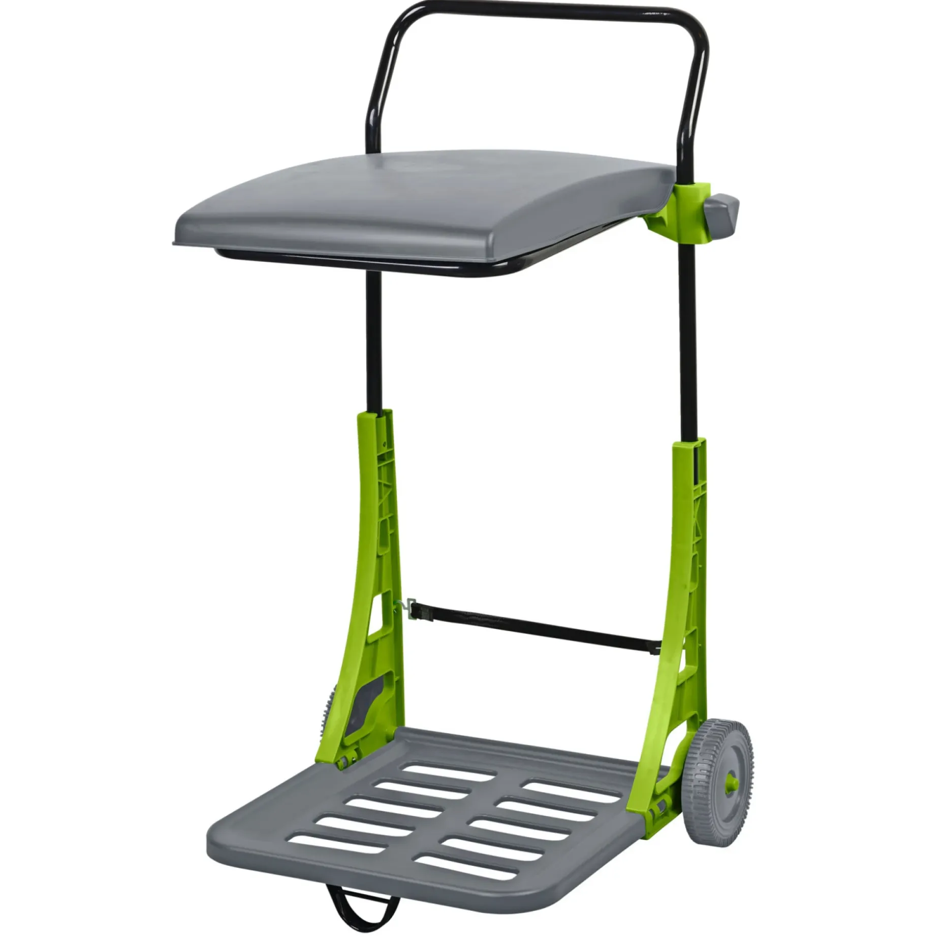 Hjulene og den stabile stålramme gør det nemt at flytte fyldt materiale til skraldespand eller kompostbunke, og den robuste konstruktion tåler daglig brug ved havearbejde.