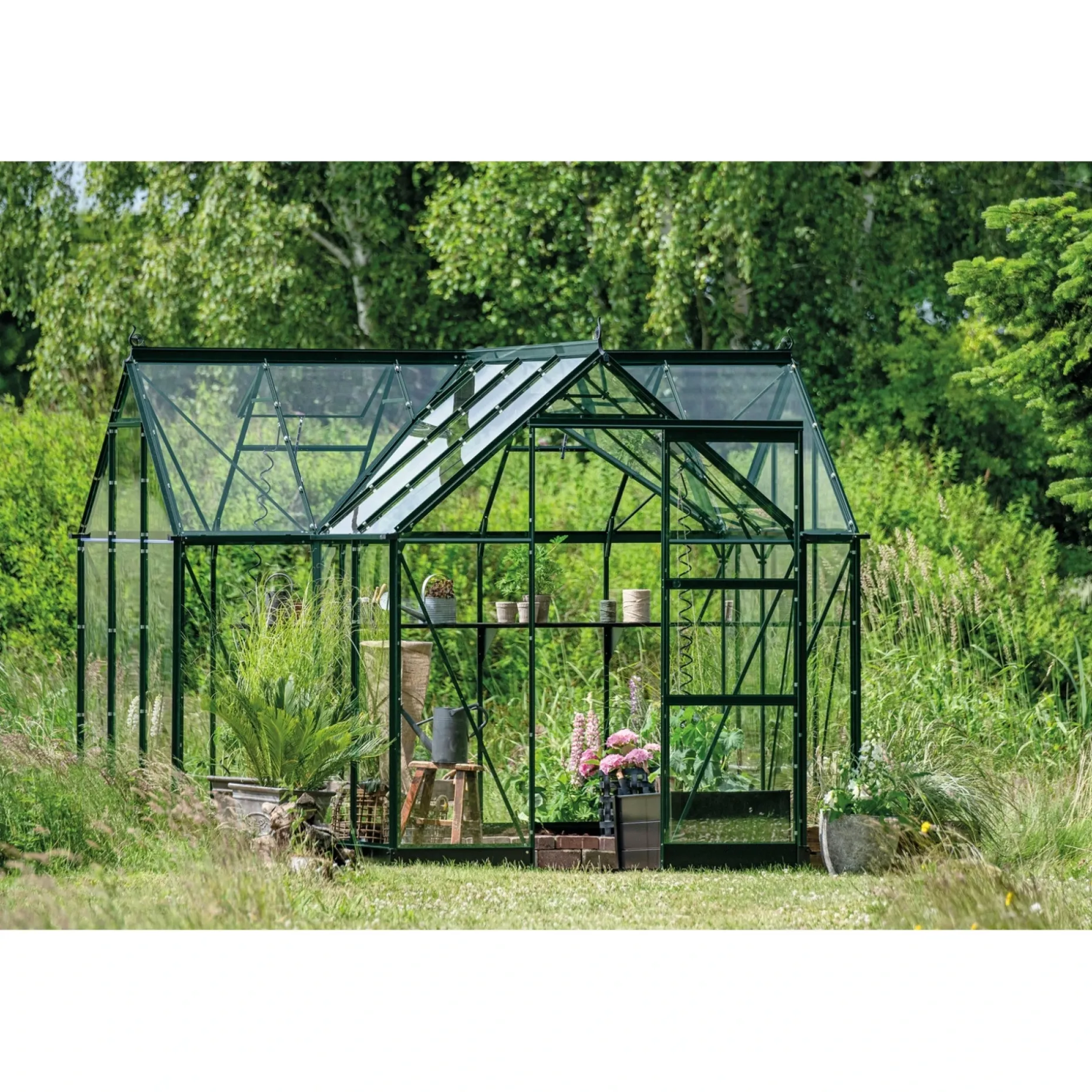 Uanset om du dyrker grøntsager, ompotter planter eller blot nyder en stille kaffepause i det grønne, vil dette drivhus hurtigt blive et særligt fristed i din have.