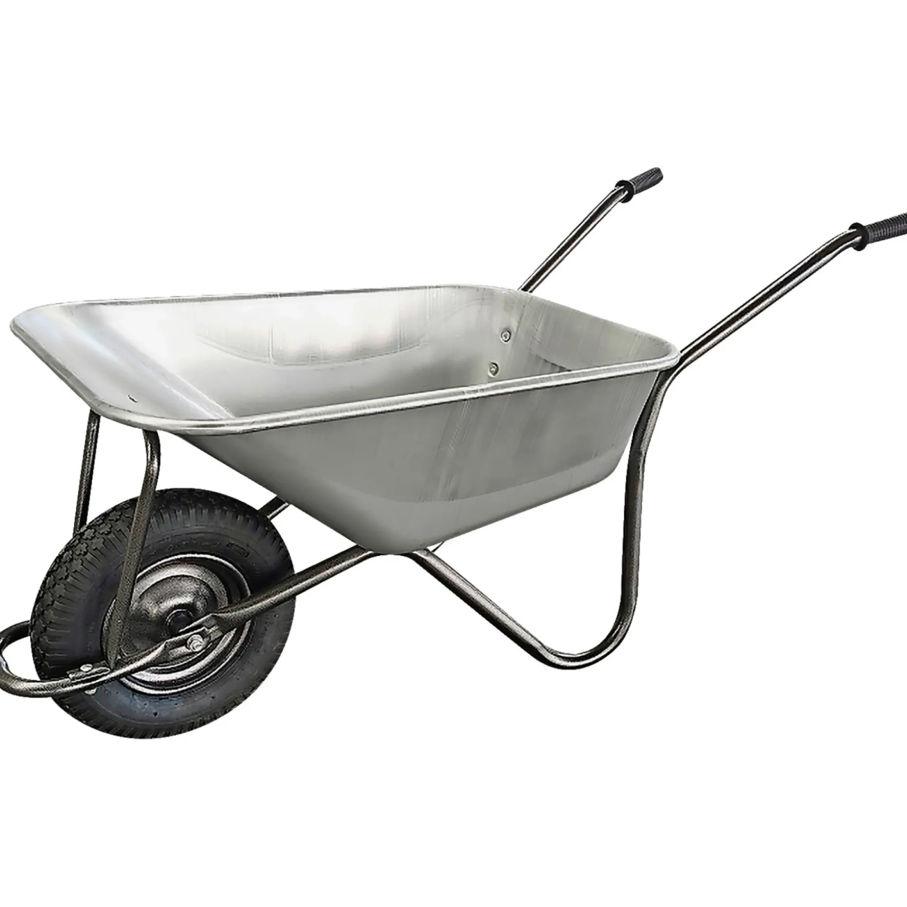 Leveres med 2-lags luftgummihjul 4.00×8″ med stålfælge og kuglelejer (16″ luftgummihjul), hvilket sikrer stabilitet og god kørbarhed på både grus og jord.