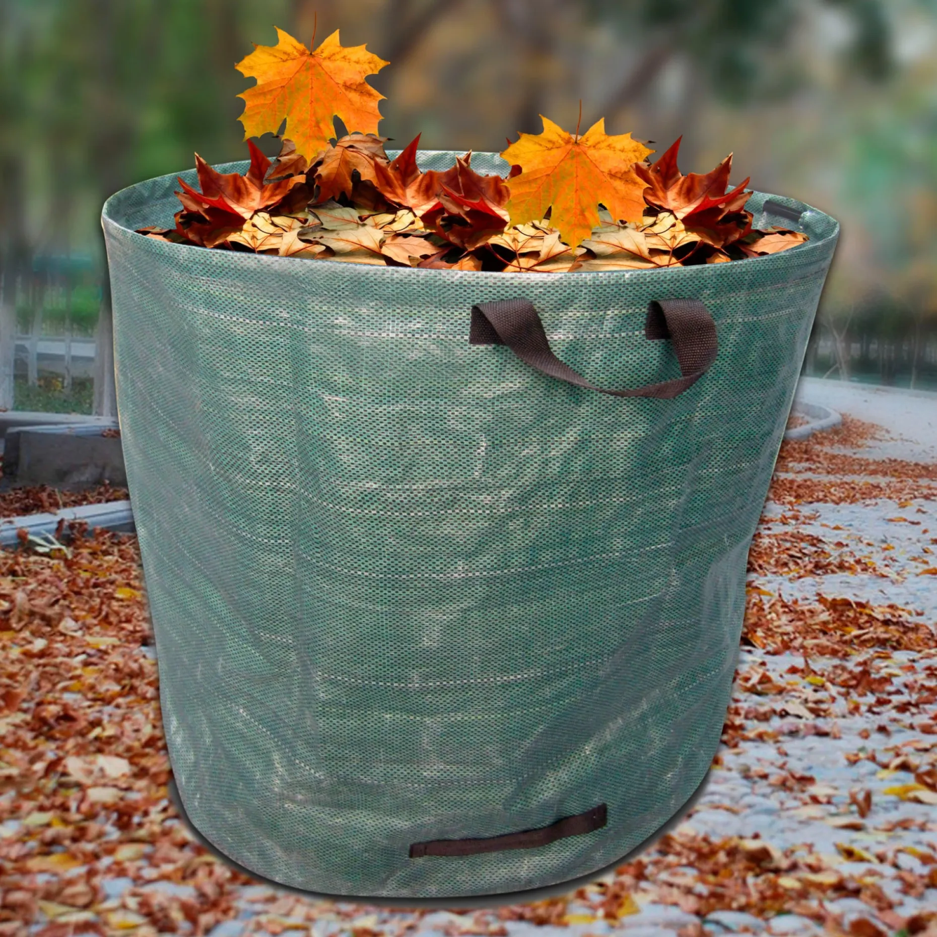 Når sækken ikke er i brug, kan den foldes sammen så den fylder minimalt i redskabsskuret eller i bilen. Den lette vægt kombineret med PP 150 g/m2-materialets stabilitet gør det nemt for én person at arbejde alene med større mængder haveaffald.