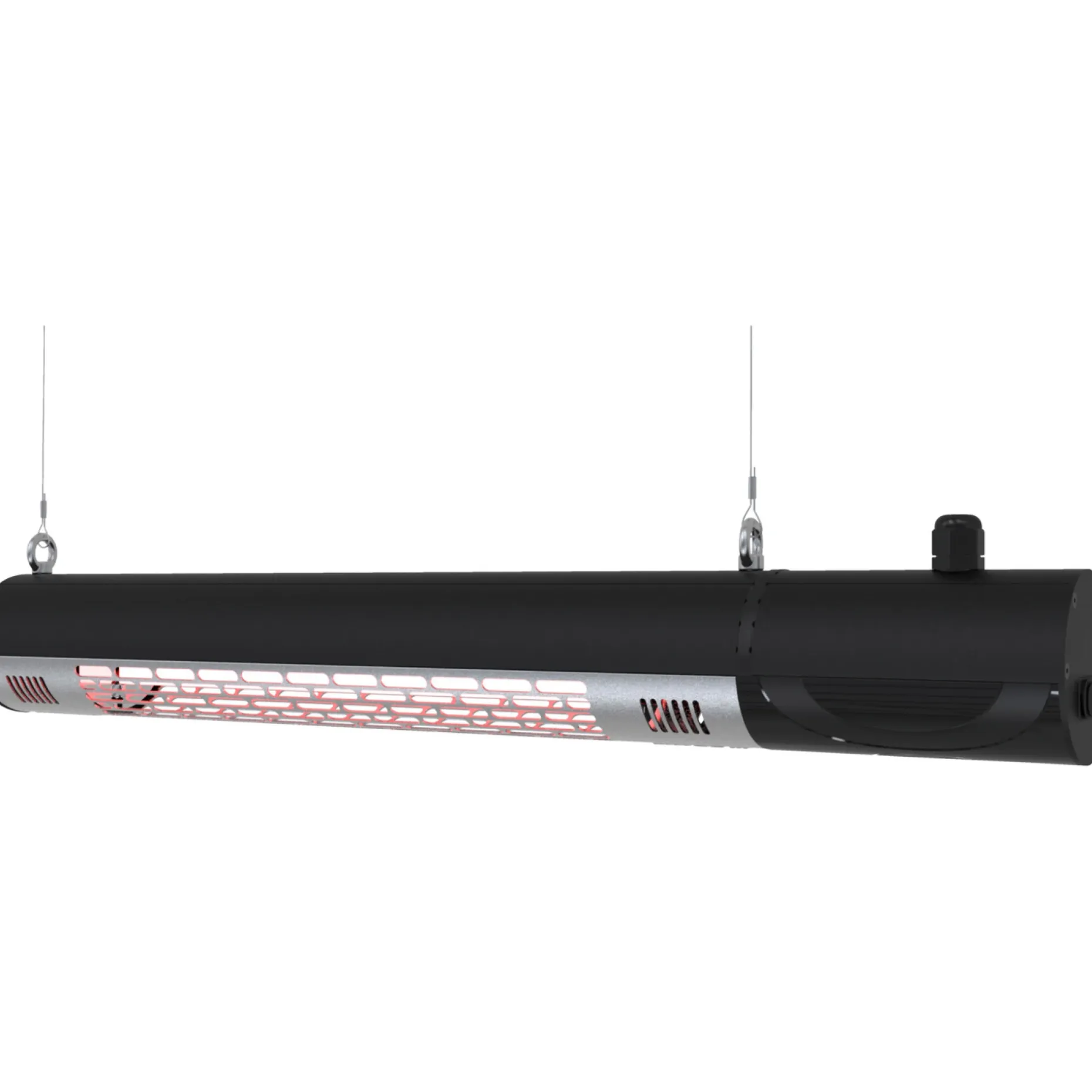 Ideel til montering under markiser og tagudhæng. 92% af energien konverteres til varme og giver rigeligt varme til de personer, der sidder indenfor en afstand af 3 meter fra varmeren. 1500W ultra low glare halogenrør med en levetid på minimum 7000 timer. Inklusiv fjernbetjening. Et overtræk kan købes som ekstra tilbehør.