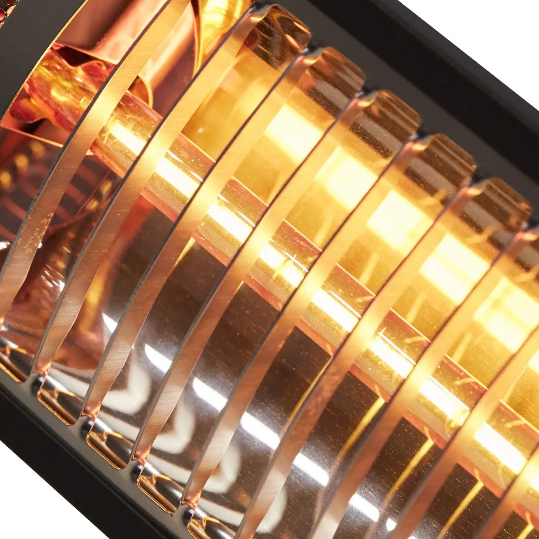 Væghængt HORTUS infrarød kortbølge terrassevarmer i smart og slankt design – ideel til montering under markiser og tagudhæng. 92% af energien konverteres til varme og giver rigeligt varme til de personer, der sidder indenfor en afstand af 3 meter fra varmeren. 1500W infrarød ultra low glare halogenrør med en levetid på minimum 7000 timer.