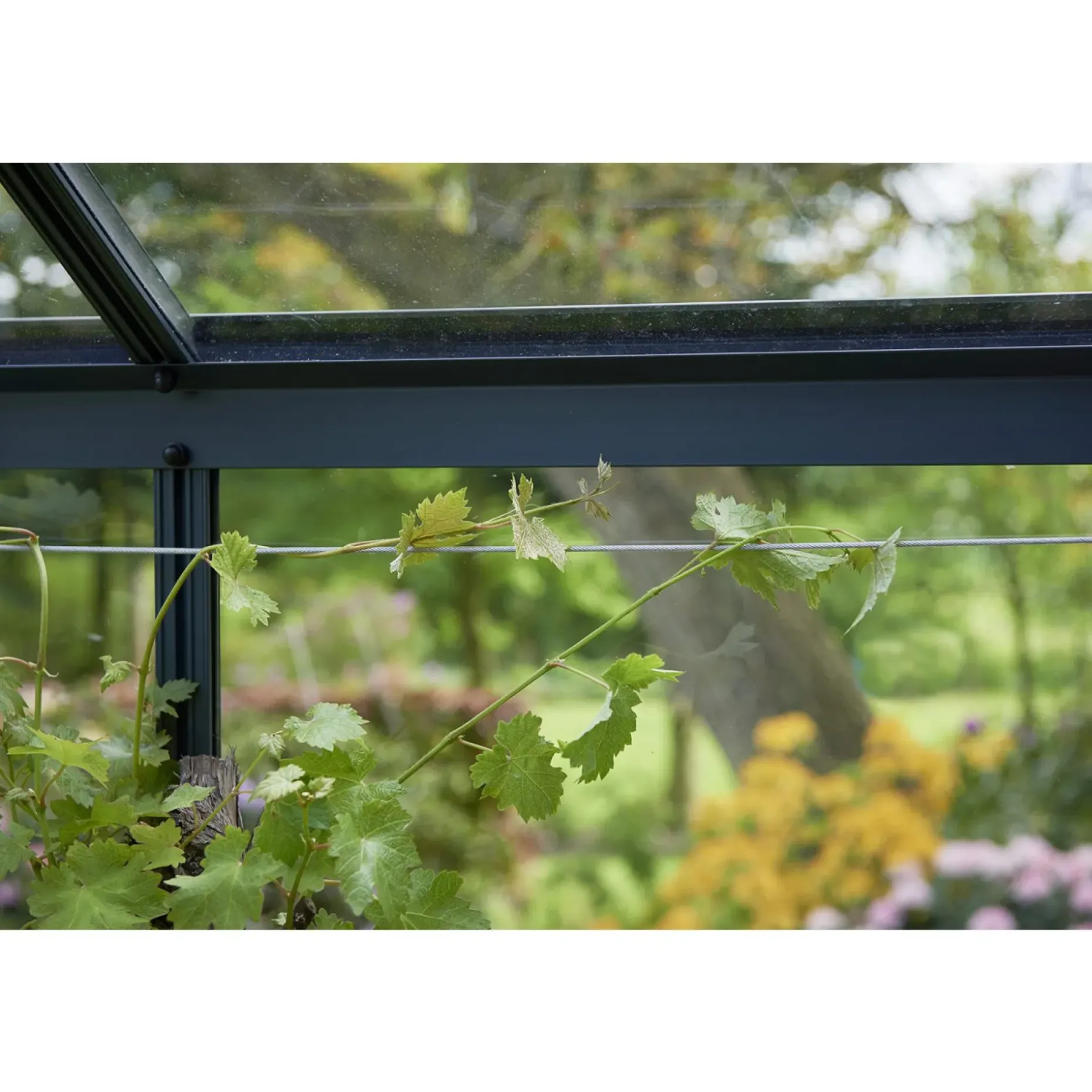 Wirer i drivhuset kan holde lette gardiner, eller være en stærk løsning som plantestøtte til vinranker og slyngplanter. 2 stk á 6 m