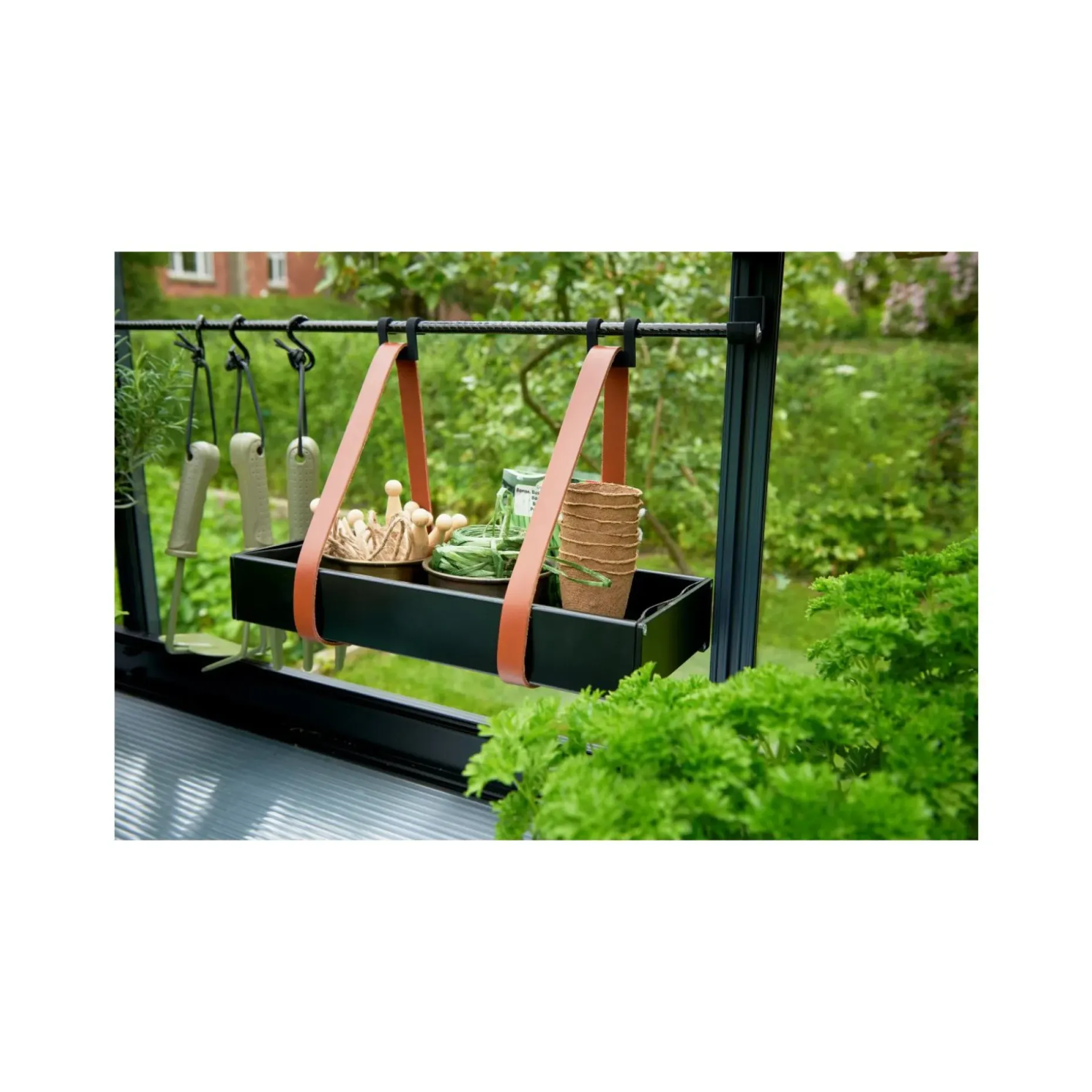 Det er den ideelle hylde til ekstra haveredskaber, krukker og plantespirer.