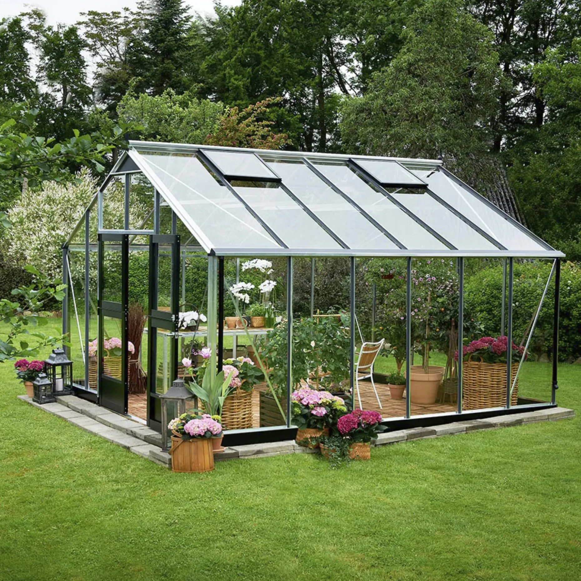 Inde i drivhuset har du plads til meget, med dets 16,2 m2 og ekstra sidehøjde. Der er f.eks plads til et lille sæt havemøbler, eller en masse blomster, så du kan skabe dit eget fristed, og blomsterparadis.
