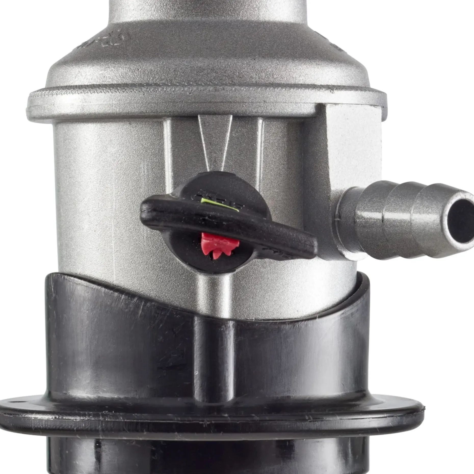 Som lavtryksregulator giver den en stabil afgangstrykssætning ved 29 mbar, hvilket er afgørende for apparater der kræver dette trykniveau. Click-on tilslutningen gør det nemt at montere regulatoren direkte på flaskens ventil, mens slangestudsen giver en sikker afgang til gasledning.