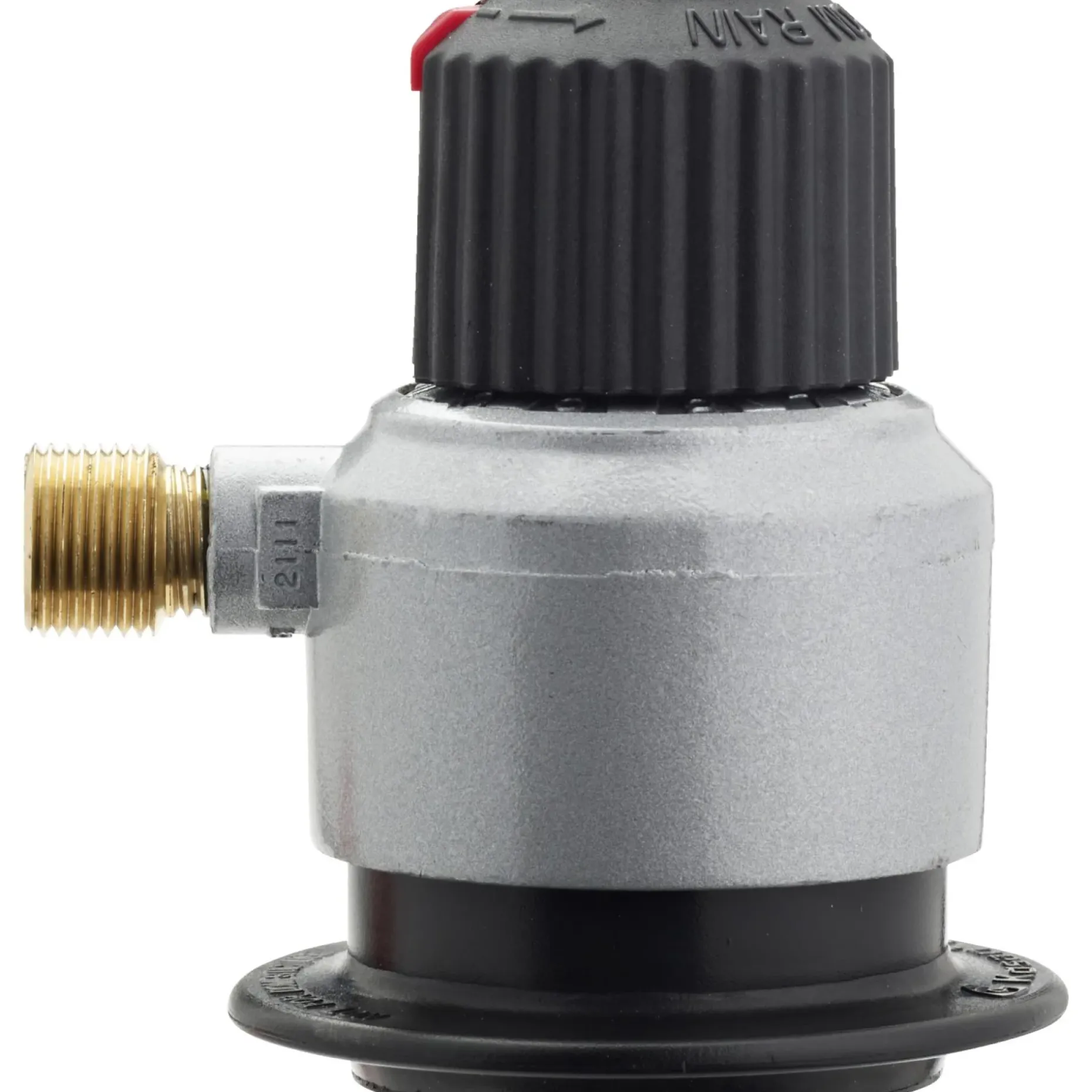 Mellemtryksregulator designet til gasflasker med click-on ventil. Regulatoren leverer et stabilt afgangstryk på 0,5-2 bar, hvilket gør den velegnet til apparater, der kræver reguleret gastryk. Tilslutning sker til flasketryk via click-on ventil for hurtig og sikker montering.