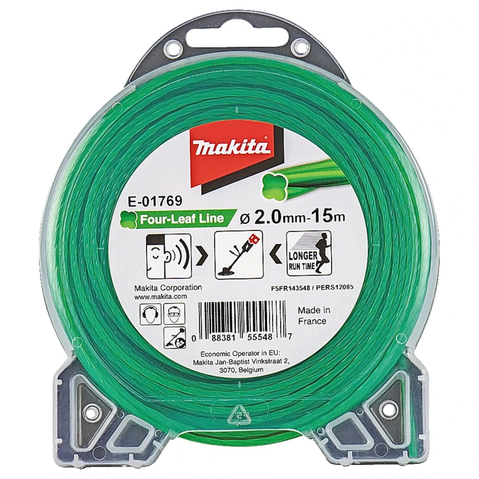 Makita NYLON TRÅD 2.0-15M i kløverformet 4 kant er udviklet til effektiv trimning med mindre støj og lavere energiforbrug. Trådens særlige form reducerer luftmodstand og vibrationer, så maskinen arbejder mere effektivt.