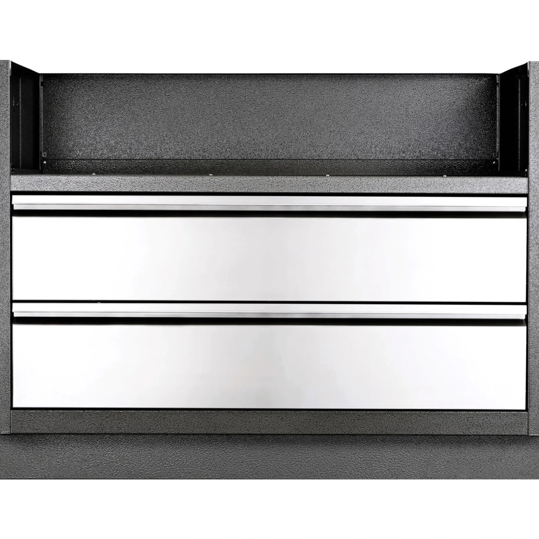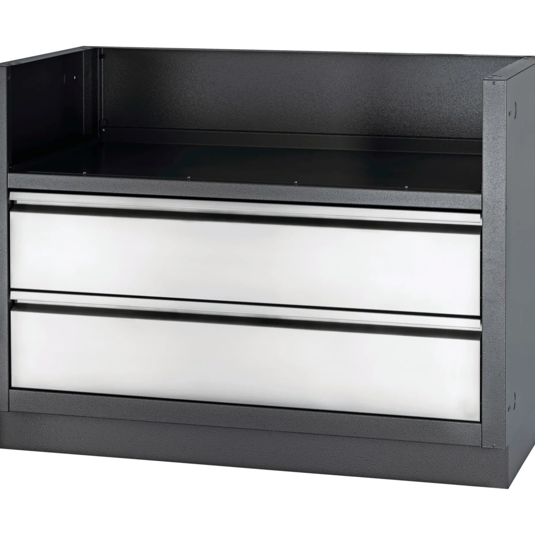 To rummelige skuffer i 304 rustfrit stål sidder på glideskinner, så grilltilbehør opbevares overskueligt og er let at trække ud. Skufferne er nemme at rengøre og modstår korrosion, så de bevarer et pænt udseende ved udendørs brug.