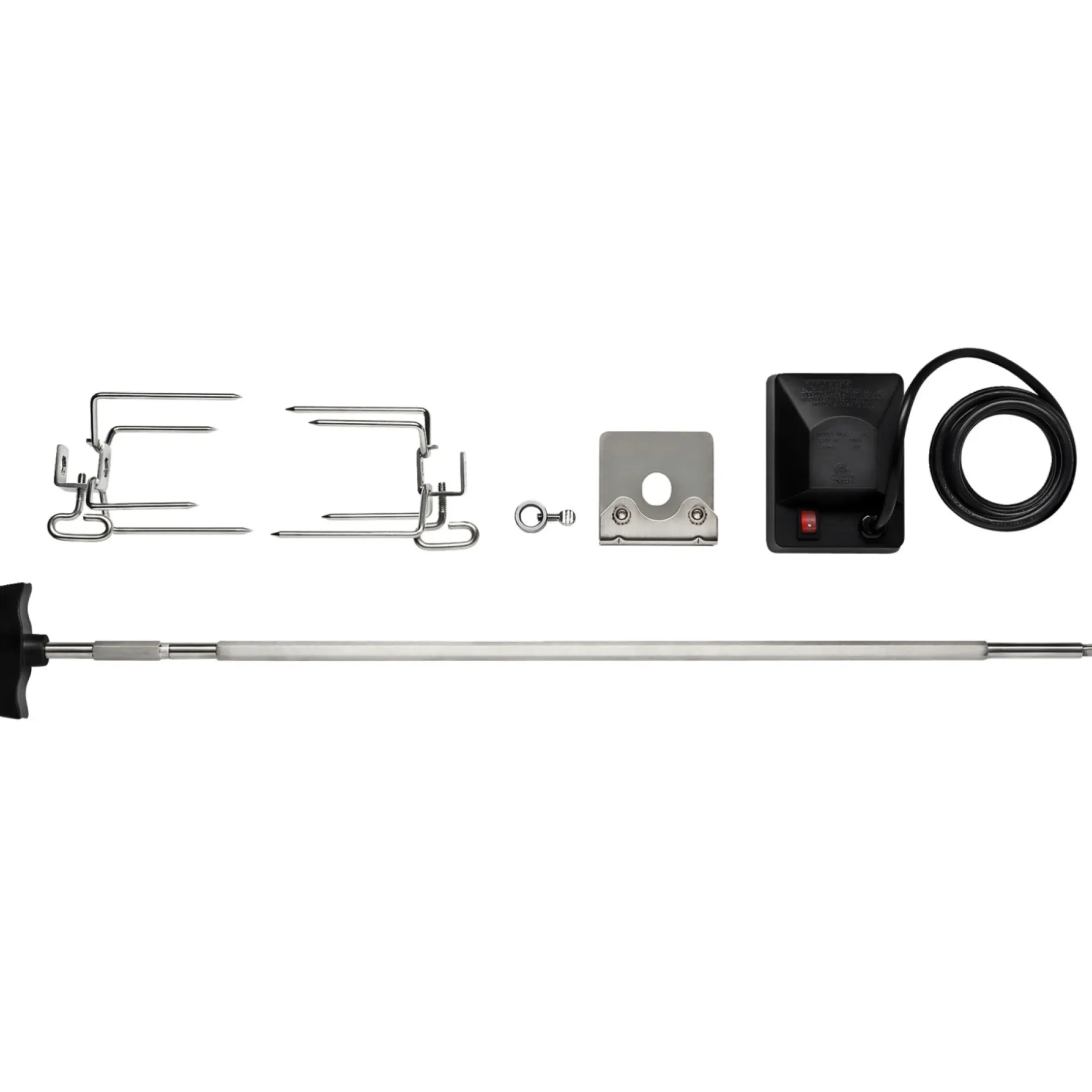 - Sættet indeholder alle dele, du skal bruge for rotisseri‑tilberedning