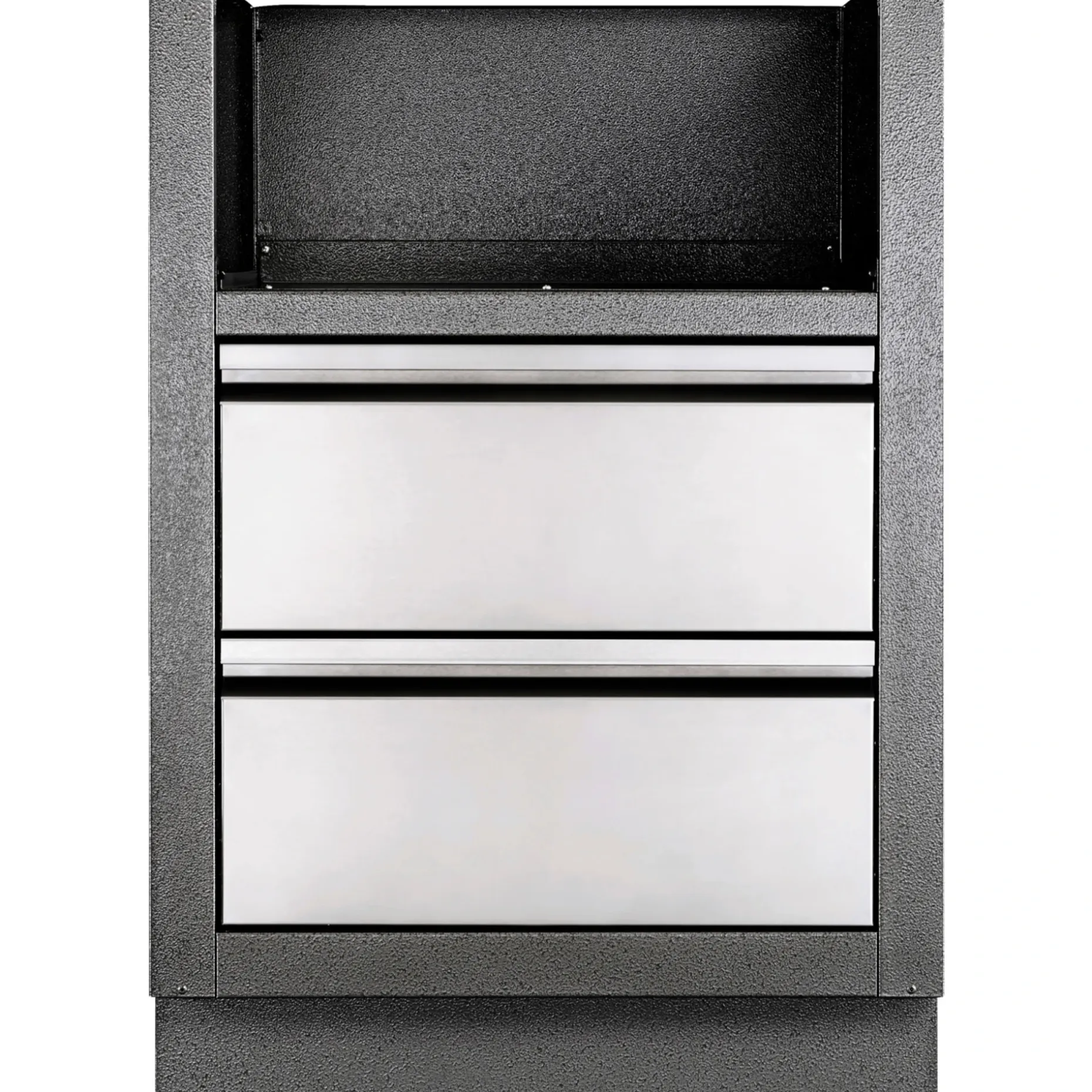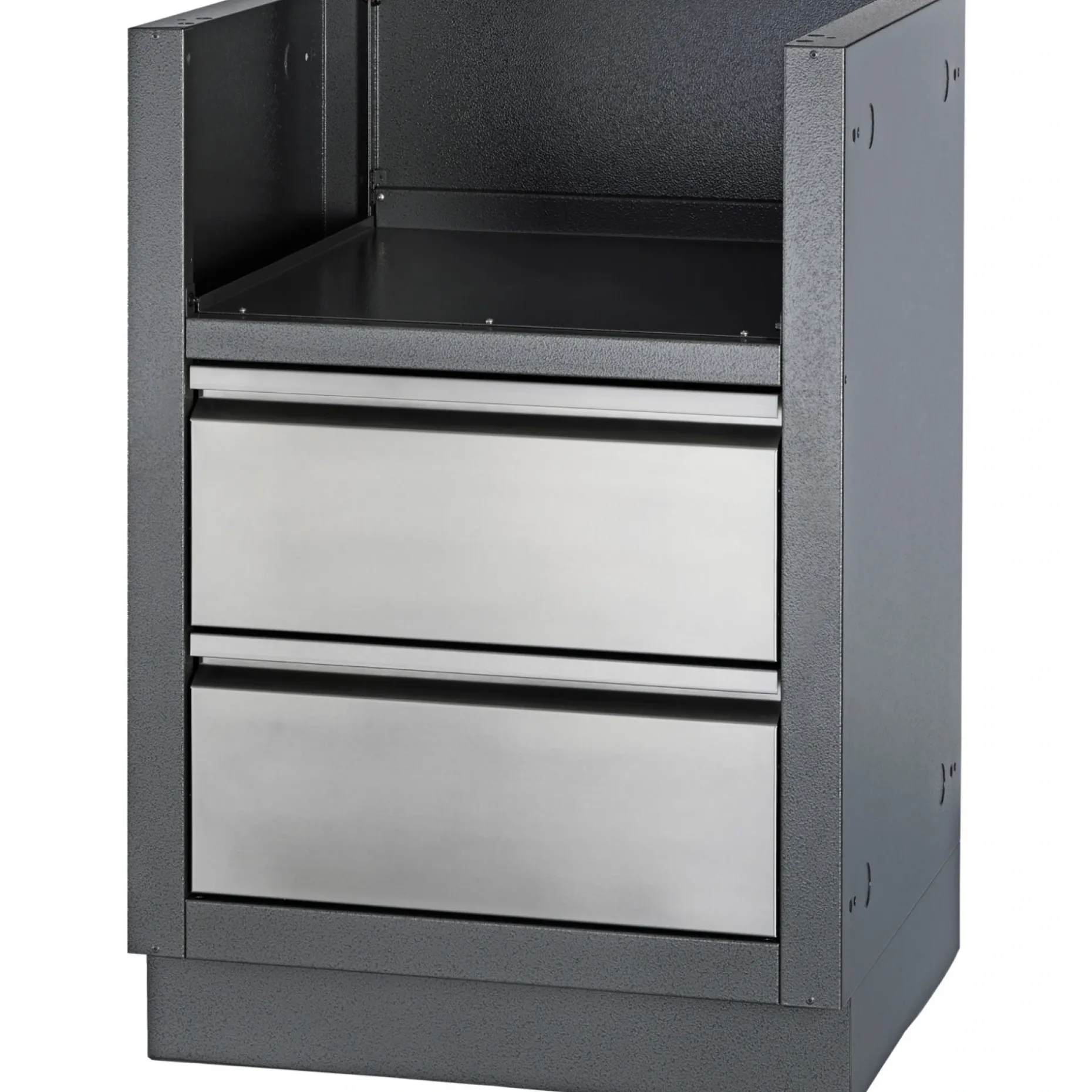 Med underskabet får du to rummelige skuffer i 304 rustfrit stål med glideskinner, hvor du kan opbevare din samling af grilltilbehør. Skabet har udskæringer til integration af gas- og elforsyningsledninger, så installation holdes ryddelig og sikker.