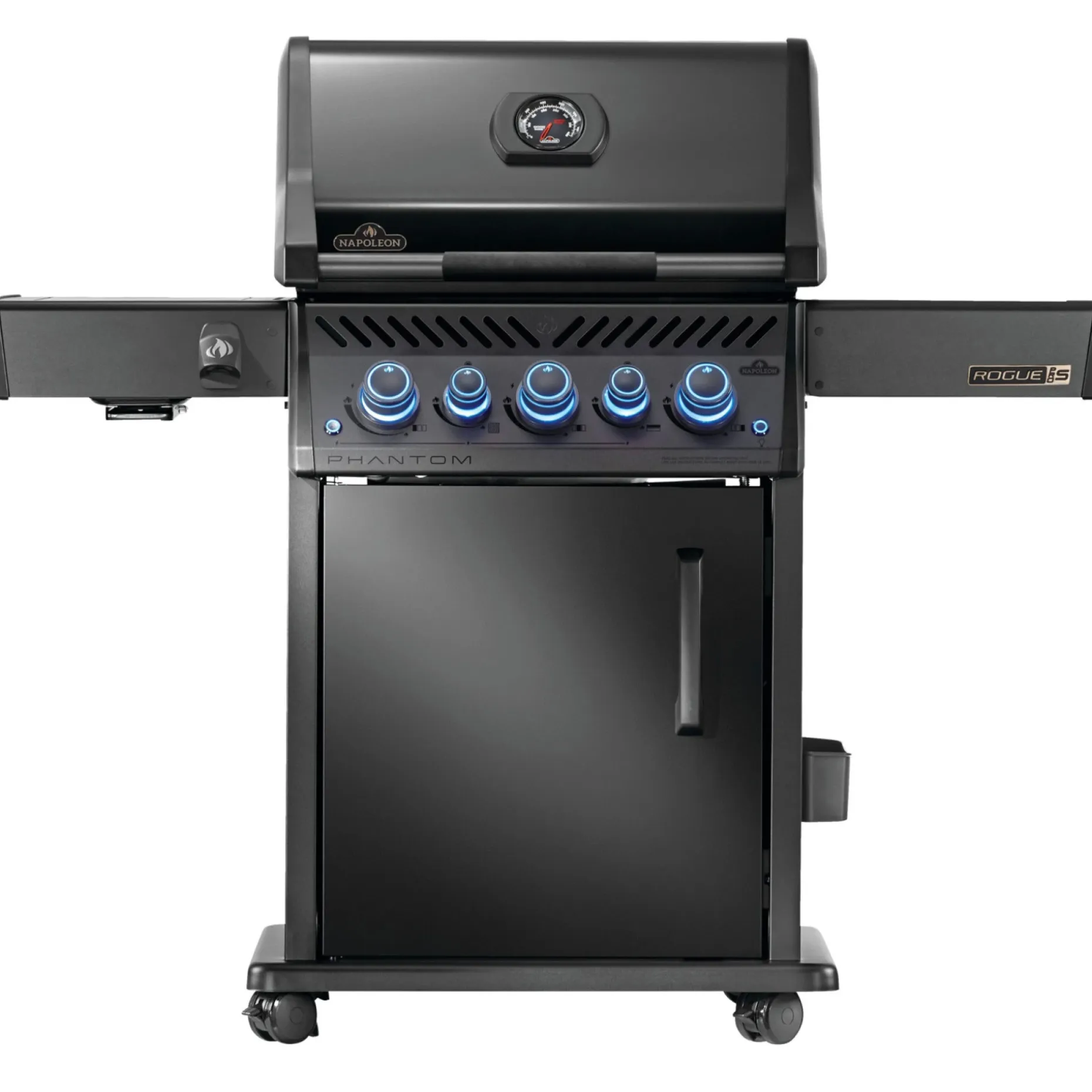 Napoleon Rogue Pro-S 425 Phantom er en matsort gasgrill til dig, der vil have en højkvalitets løsning med mange funktioner. Grillen har et grillareal på 60×45 cm og tre hovedbrændere samt en stor SIZZLE ZONE™ sidebrænder, som kan nå temperaturer på op til 800 grader på cirka 30 sekunder. Infrarød bagbrænder gør modellen velegnet til rotisseri, og dobbeltvægget låg samt integreret ACCU-PROBE™ termometer giver præcis temperaturstyring.