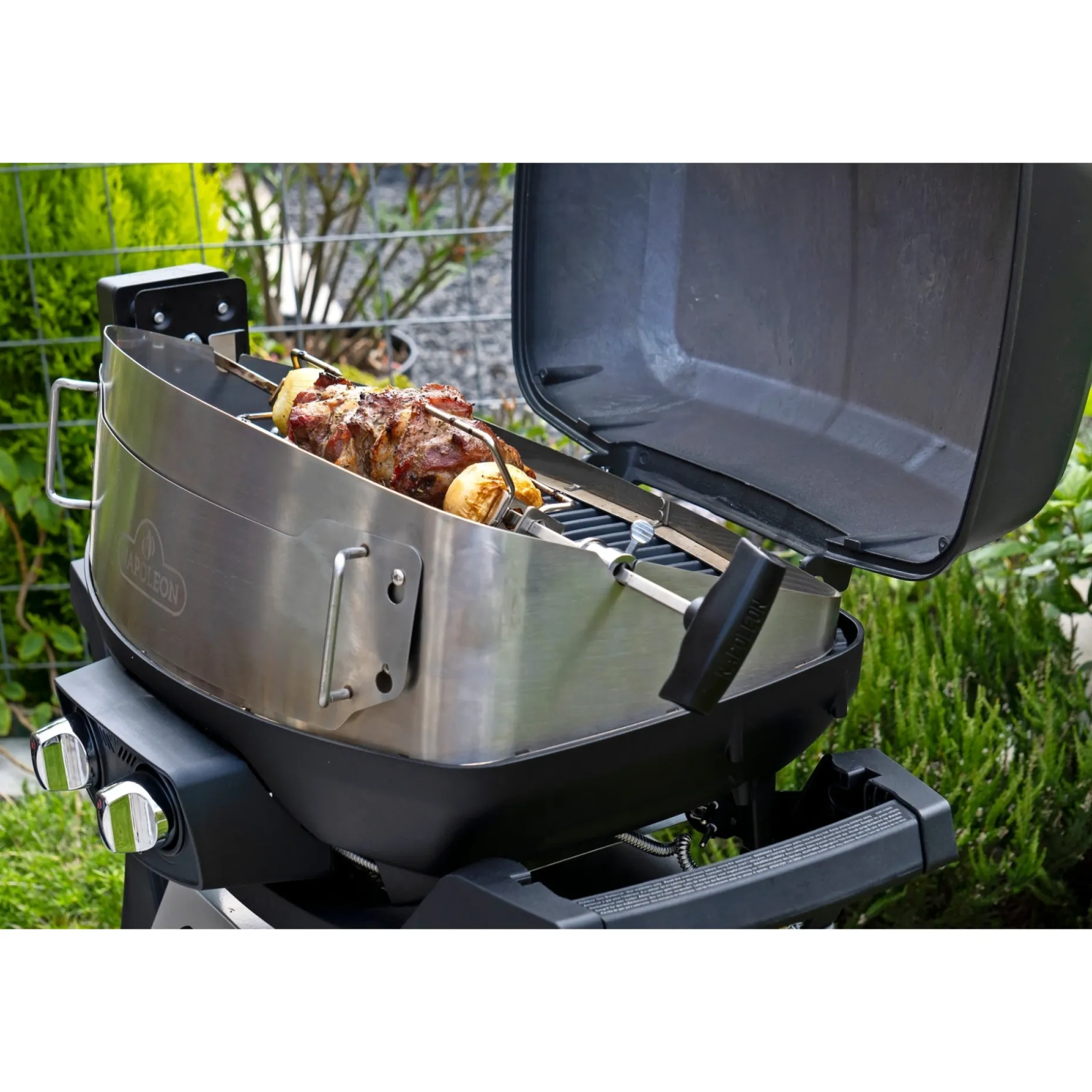 Napoleon rotisseri passer til TravelQ og TravelQ Pro og er velegnet til tilberedning af grillkylling, stege og lignende retter. Den smarte åbning gør det muligt at omdanne din TravelQ gasgrill til en pizzaovn, så du kan bage pizzaer, også når du er på farten eller på ferie.