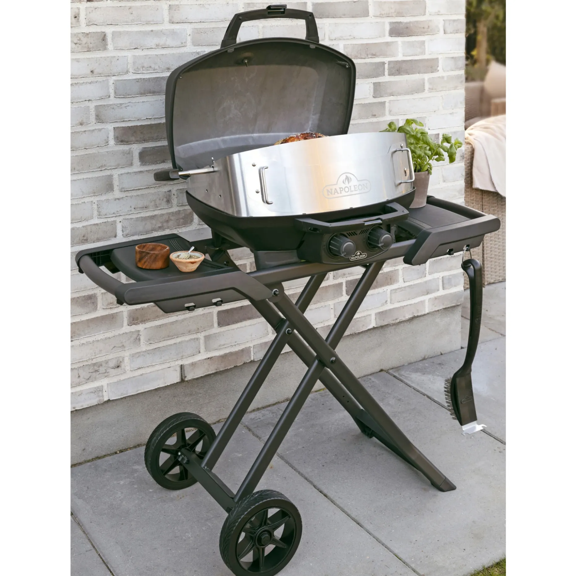 Napoleon TravelQ Pro285 Phantom er en mobil grillperle i matsort design med medfølgende vogn.