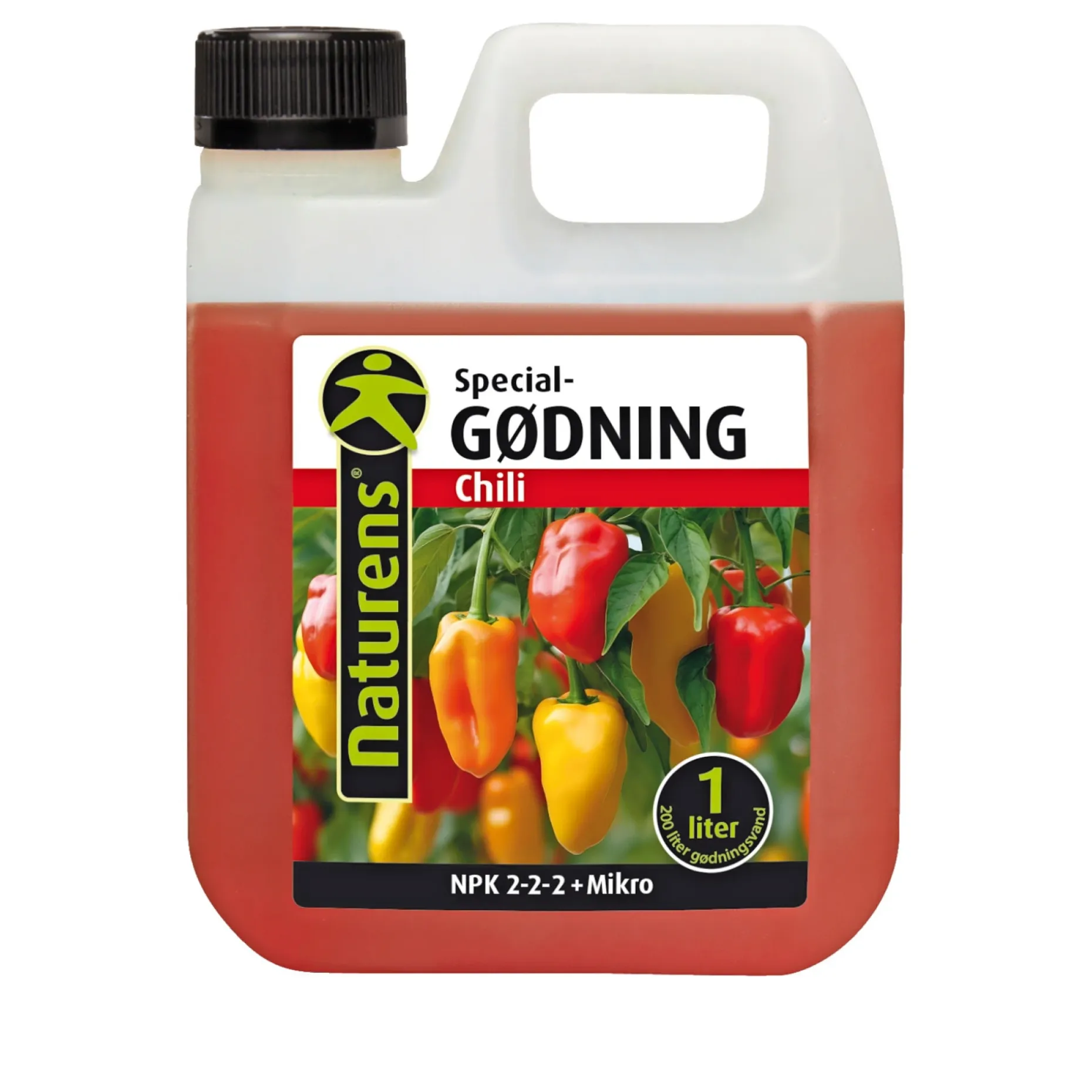 Specialgødning NPK 4-1-3 i koncentrat, beregnet til fortynding med vand i forholdet 1:200. Produktet indeholder de nødvendige mikro- og makronæringsstoffer, som er tilpasset chiliplanters behov og understøtter sund vækst, blomstring og frugtdannelse.