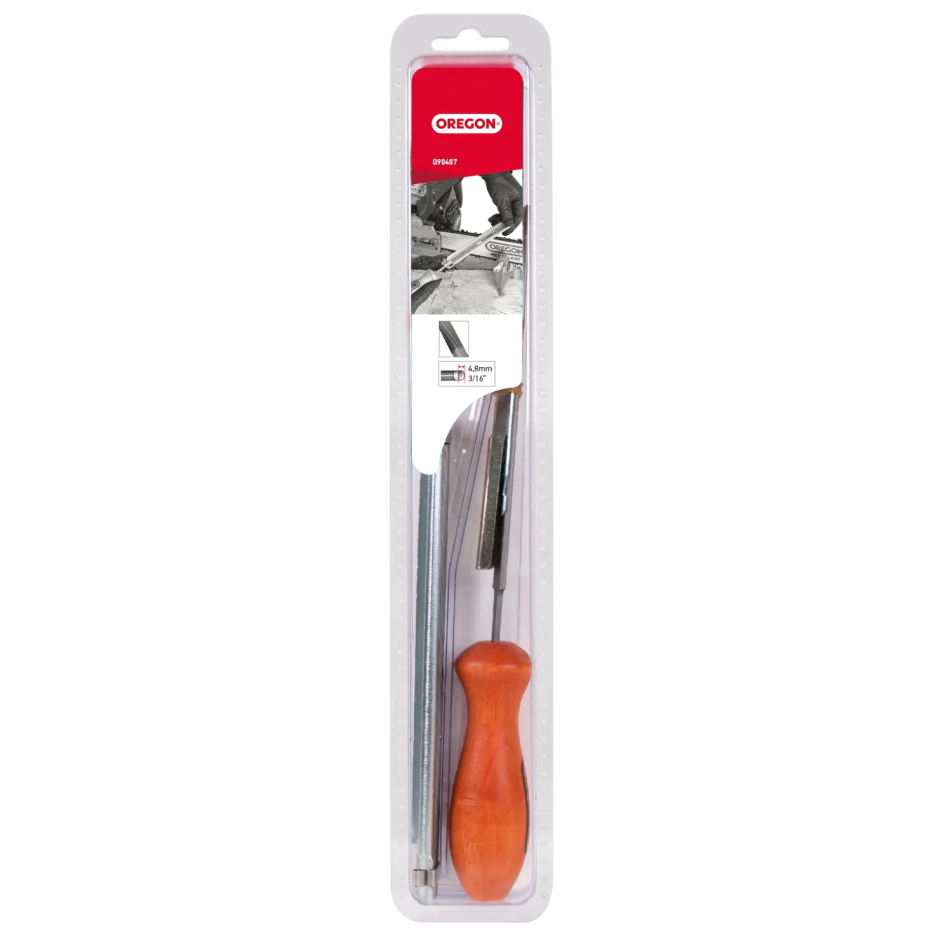 4,0mm file, 3/8H. Et ideelt værktøj til vedligeholdelse af skæretænder på kædesavskæder. Der er lavet streger på fileholderen der gør det let at placere filen korrekt hver gang, så den oversidevinkel på skæretanden altid opnås. Fileholderens fileplade holder også filen i den korrekte dybde hele tiden og på den måde fastholder filen sikkert. Fileholderen er inkl. behagelig lakeret træhåndtag.
